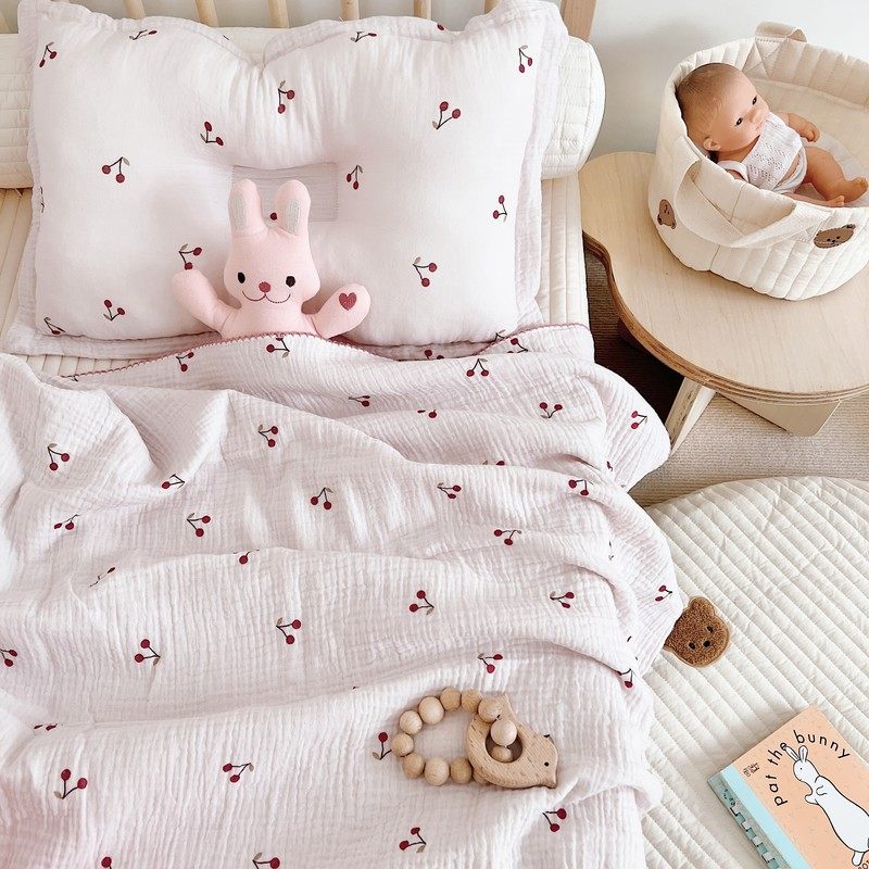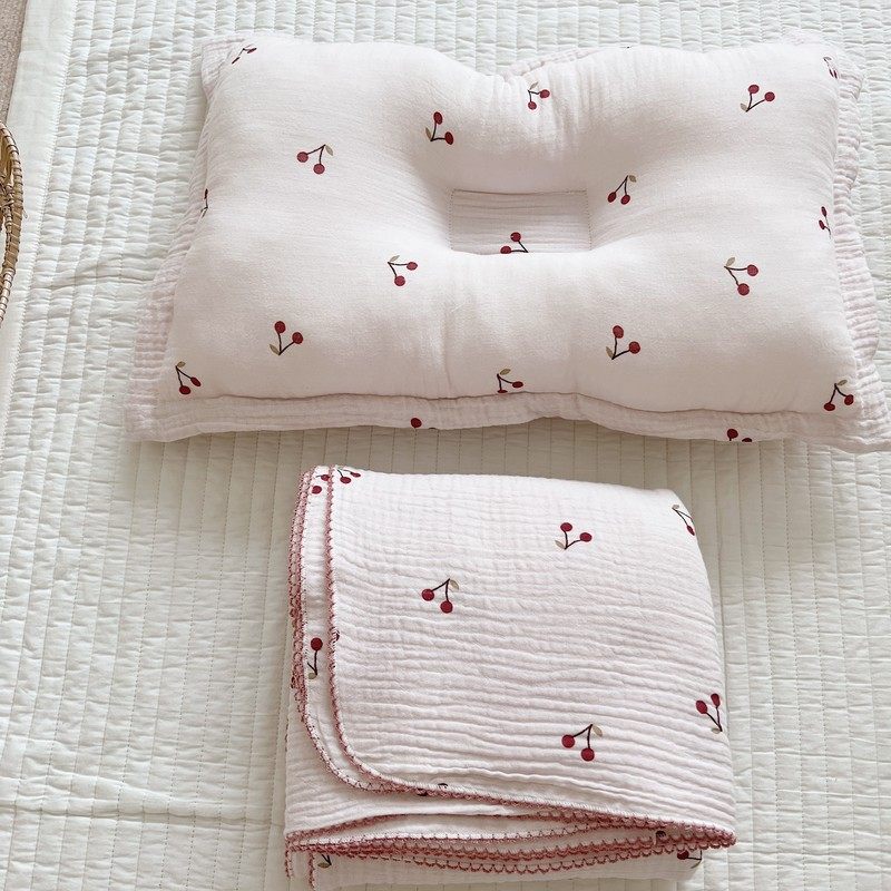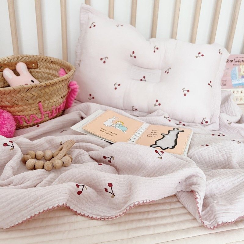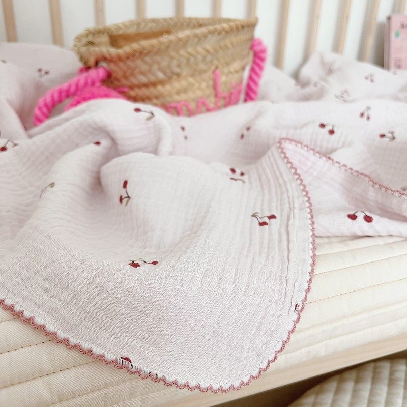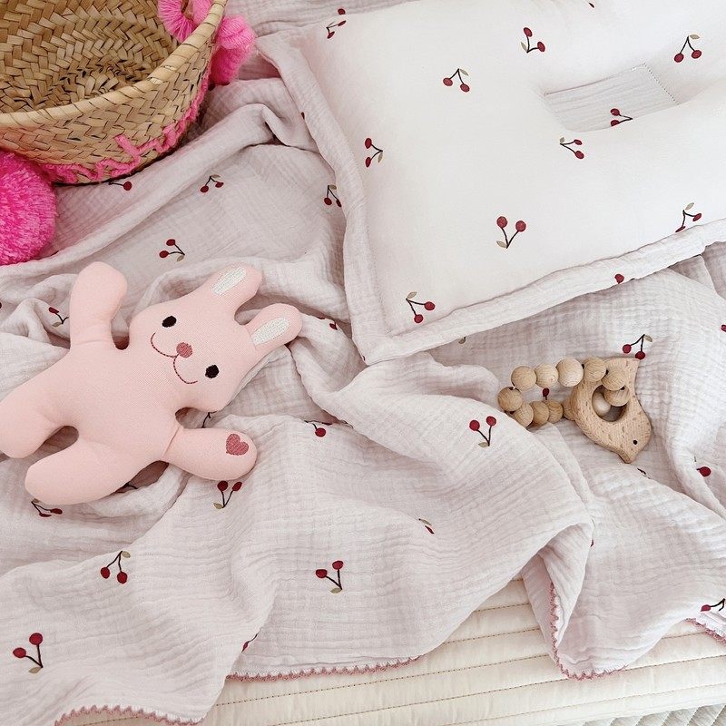 Pink fresh cute cherry blanket ins style baby gauze towel nap blanket cotton towel bath towel blanket