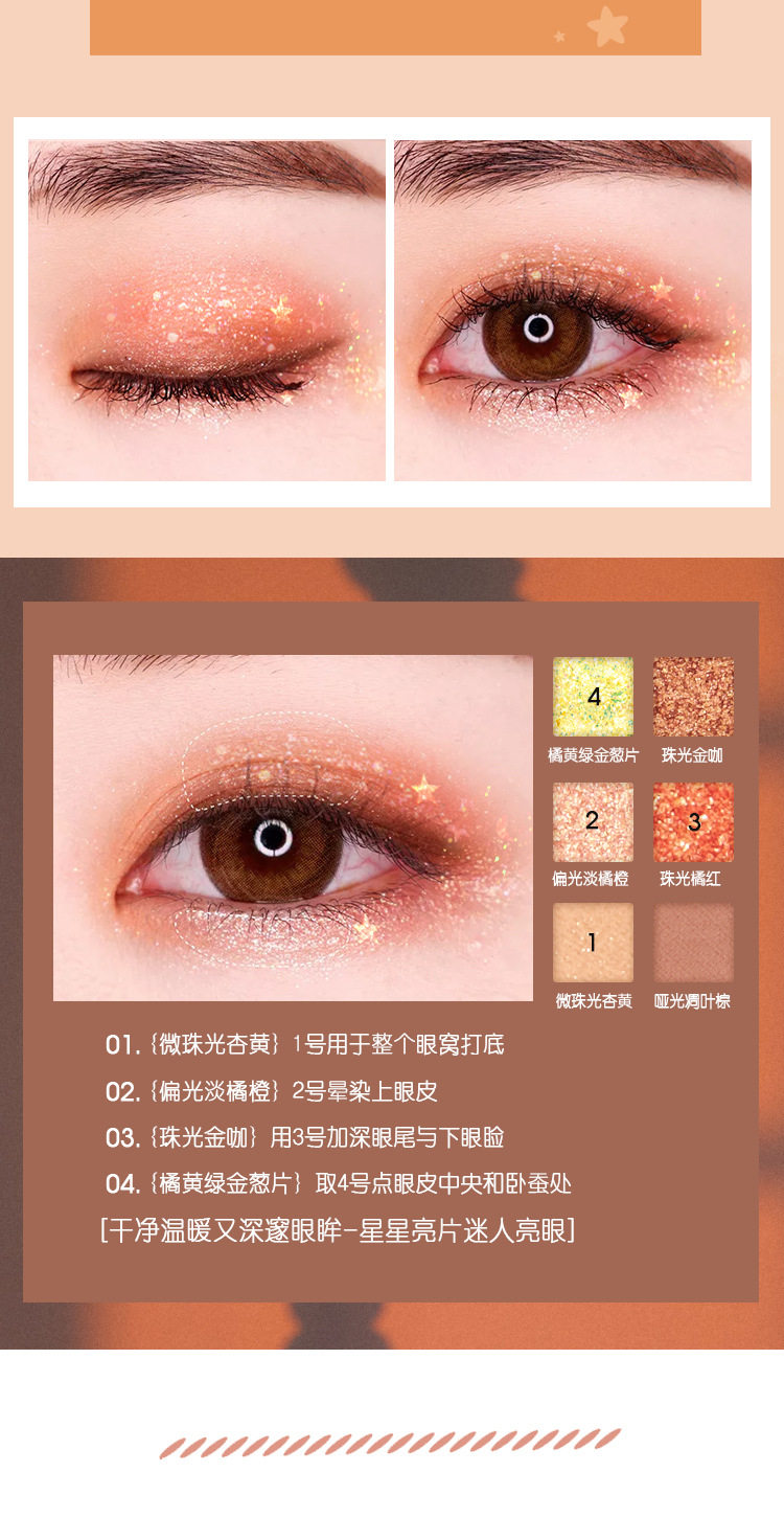 Agag Diefeiruowu Star Eyeshadow Palette Is Waterproof, Sweat-Proof and Does Not Take Off Makeup, Cross-Border Best-Selling Beauty Makeup Six-Color Eyeshadow That Lasts Makeup