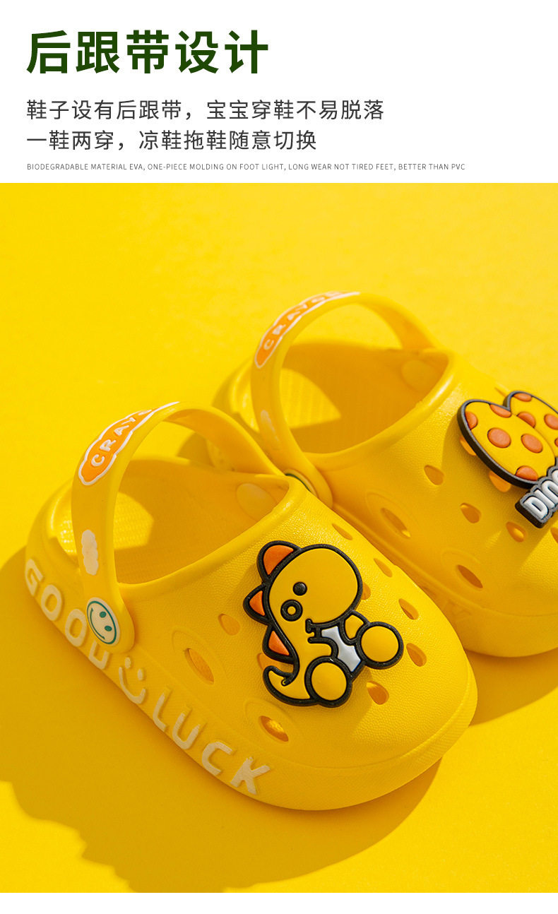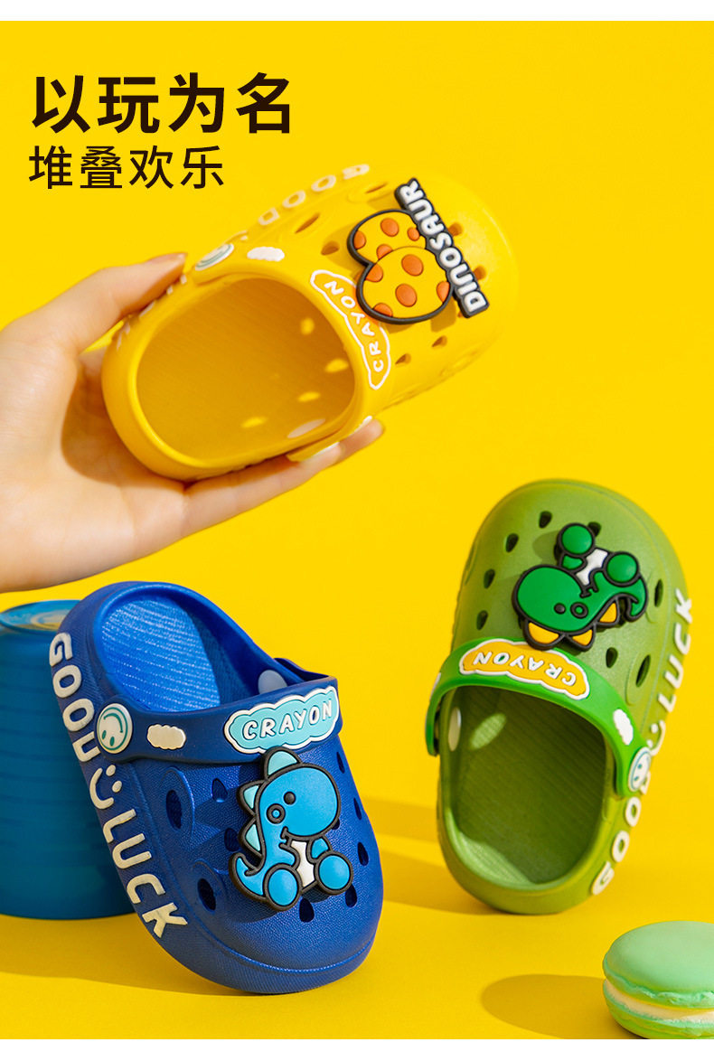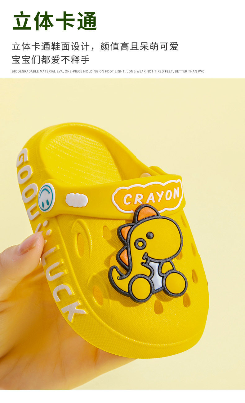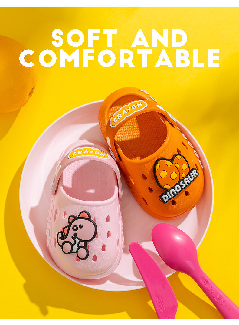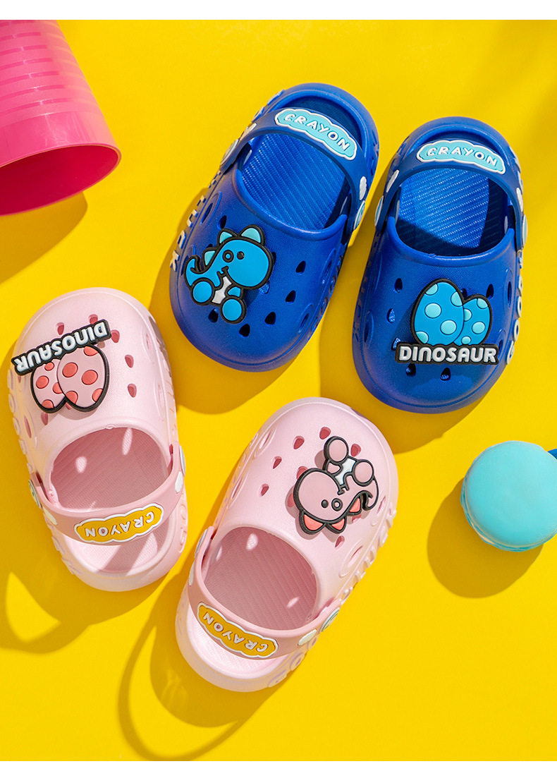 Summer Cartoon Dinosaur Children's Clog Shoes Boys' Pvc Slippers Girls' Closed-Toe Sandals Toddler Beach Shoes for Kids