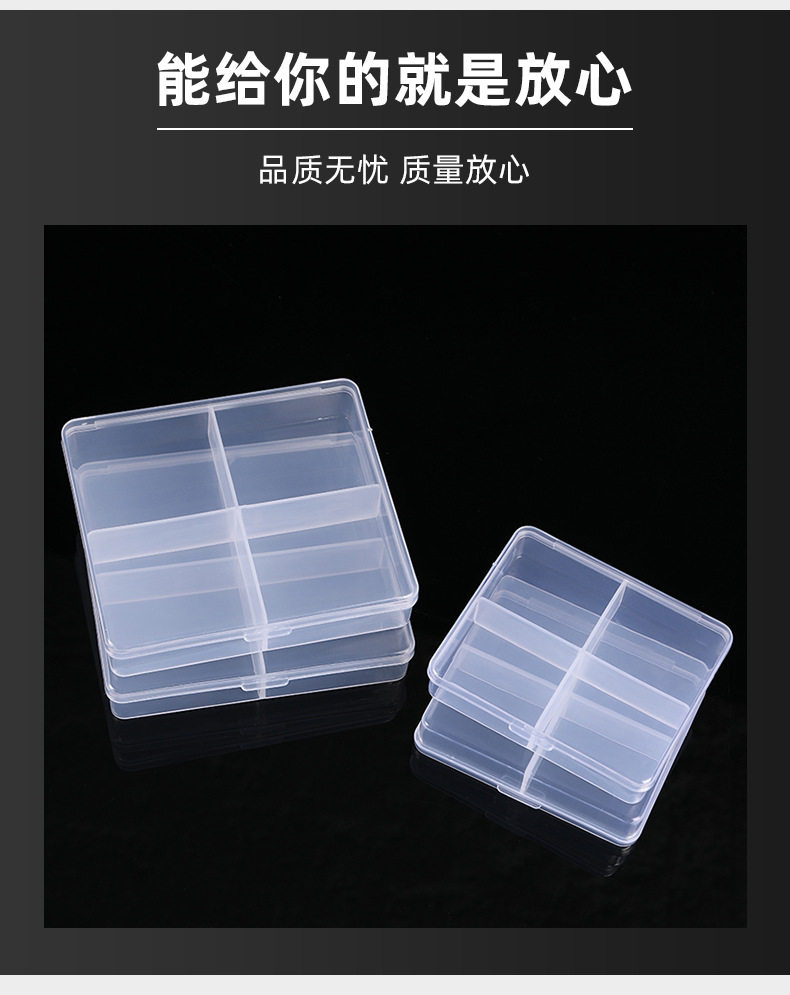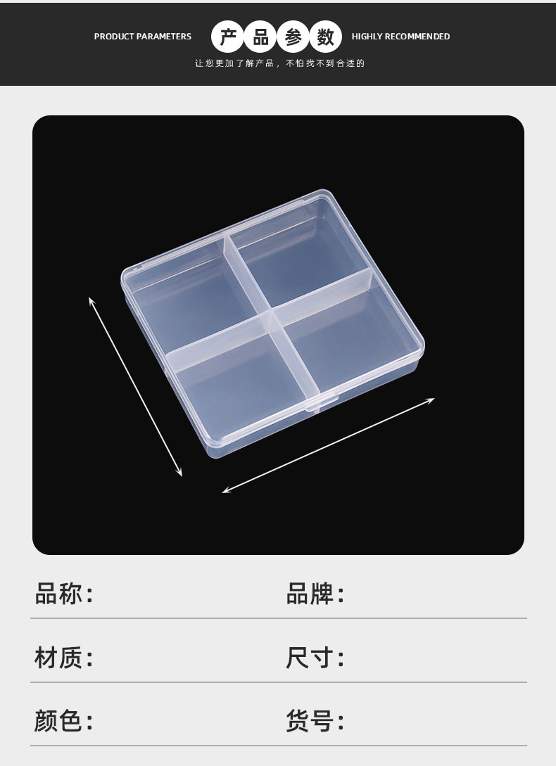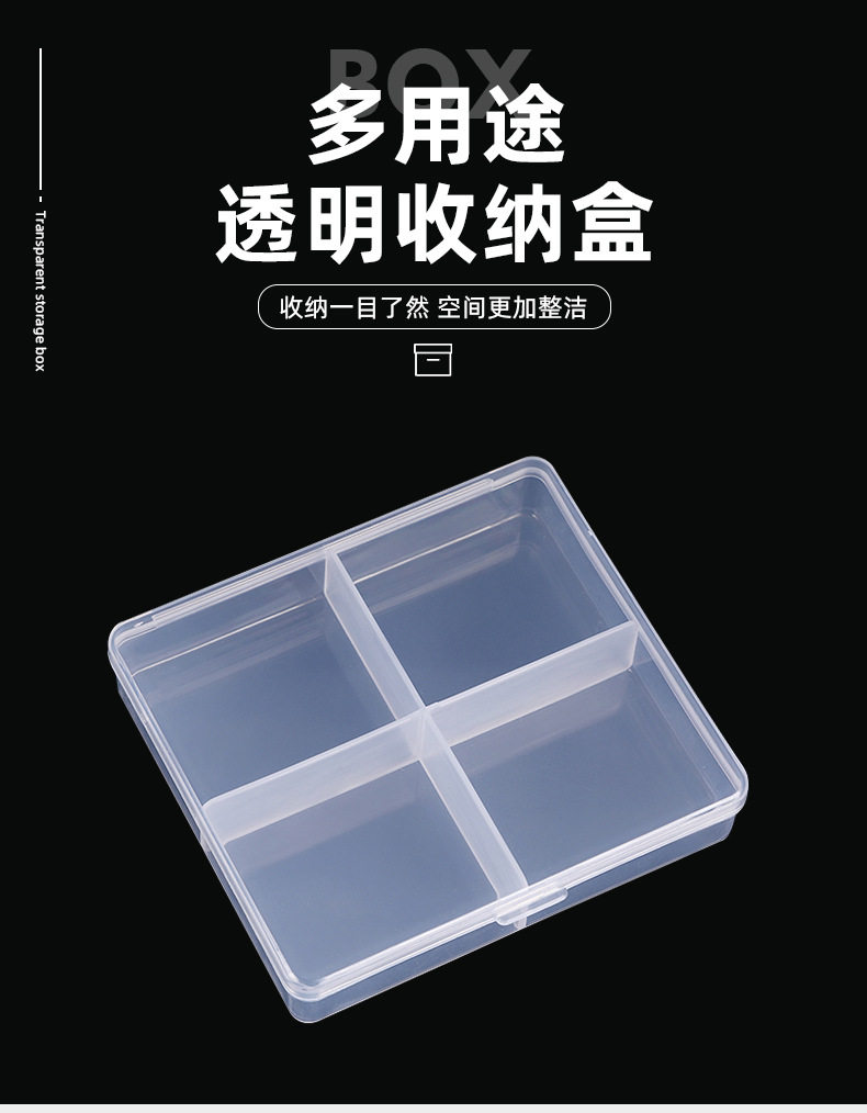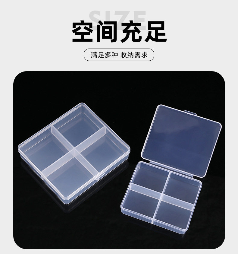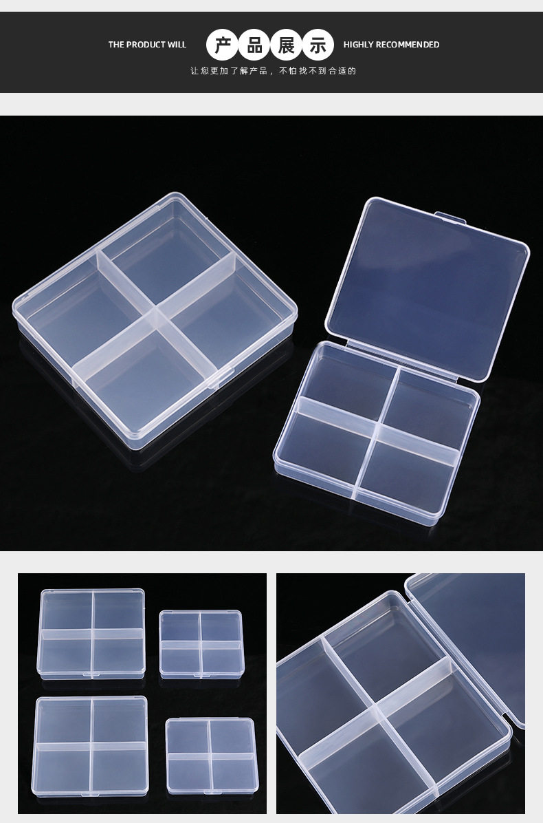 Fixed 4-grid Plastic Transparent Plastic Box Ring Storage Box with Lid Fishing Gear Manicure Box Jewelry Accessories Packaging Box