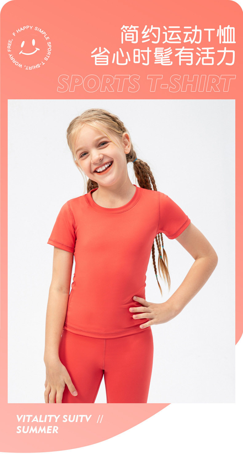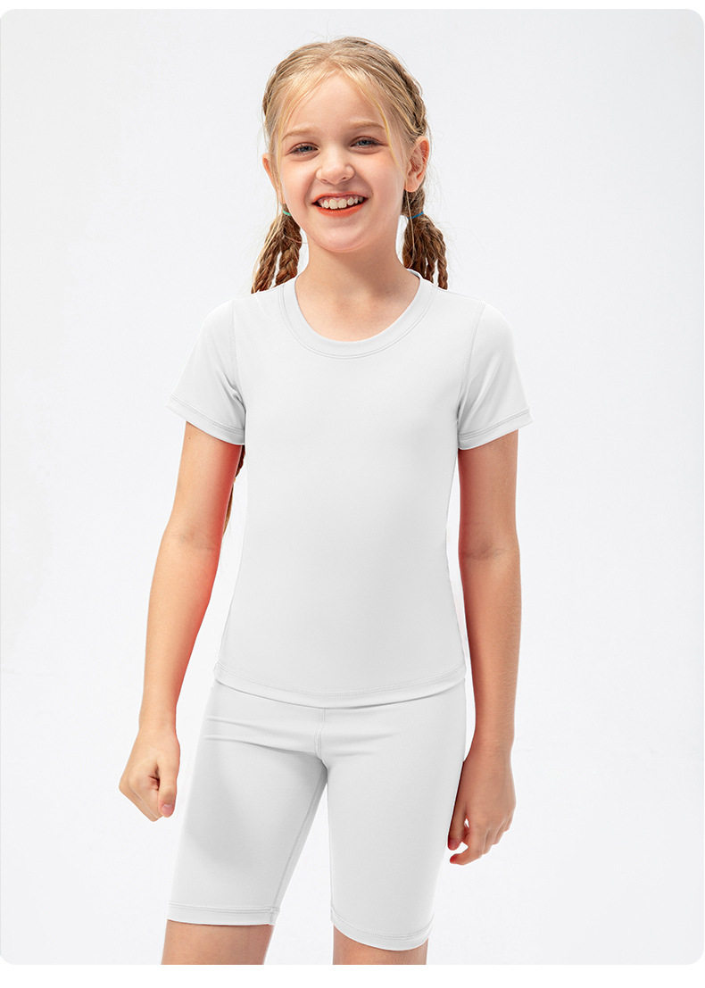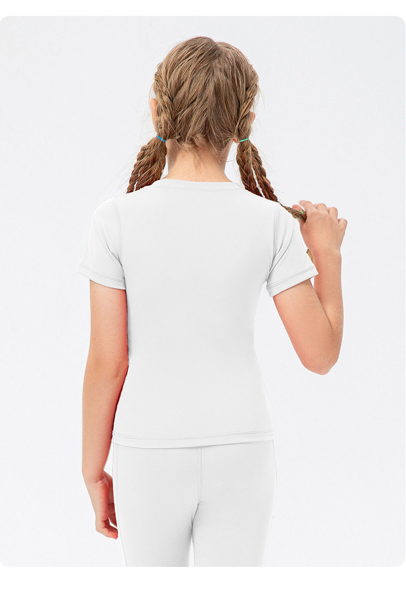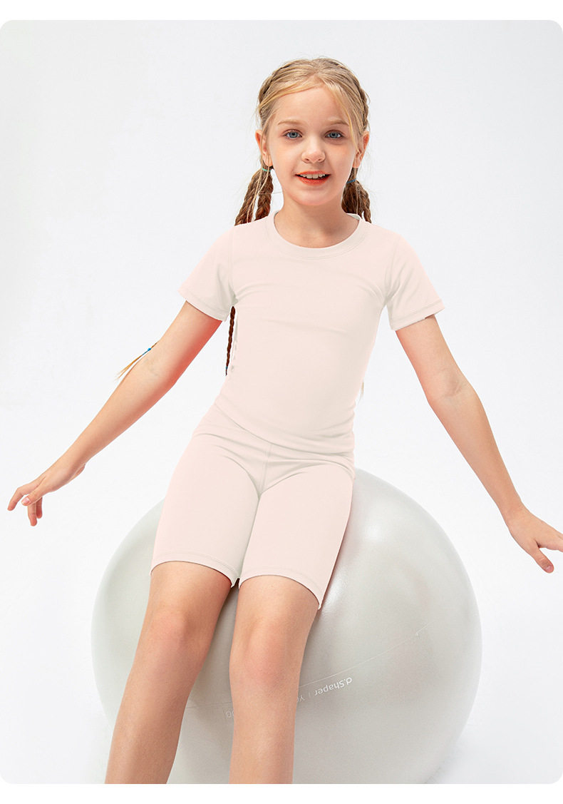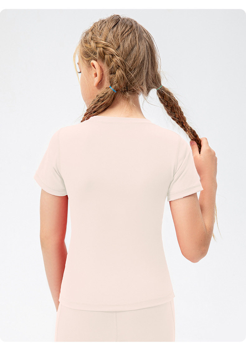 New Girls' Summer Sports Short-sleeved Skin-friendly Breathable Children's Dress Dance Yoga Training Top T-shirt 23207