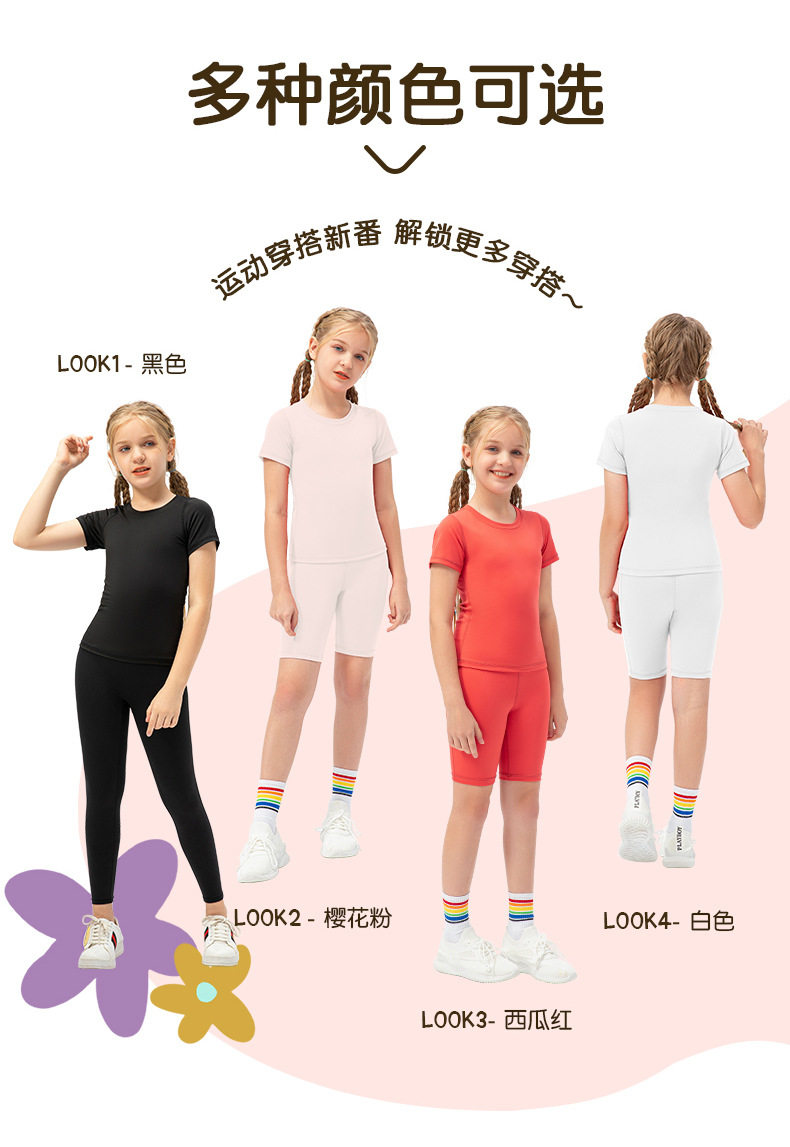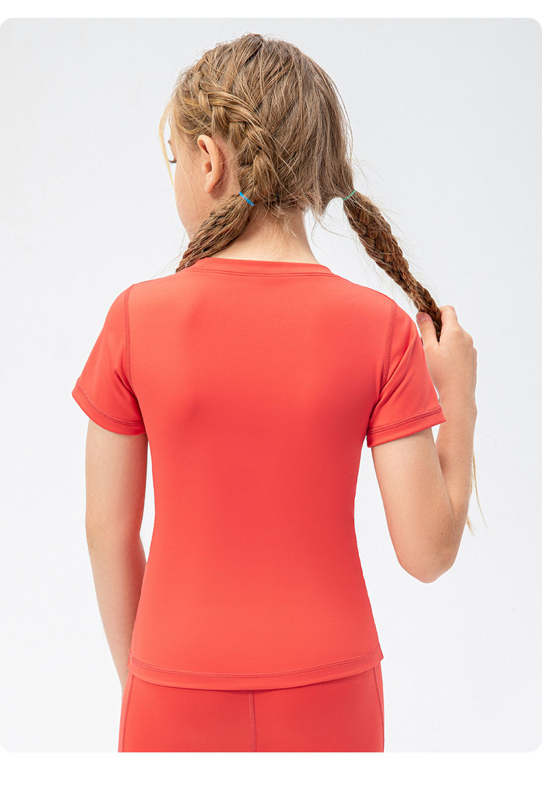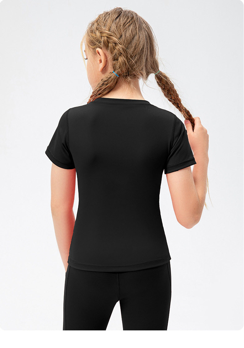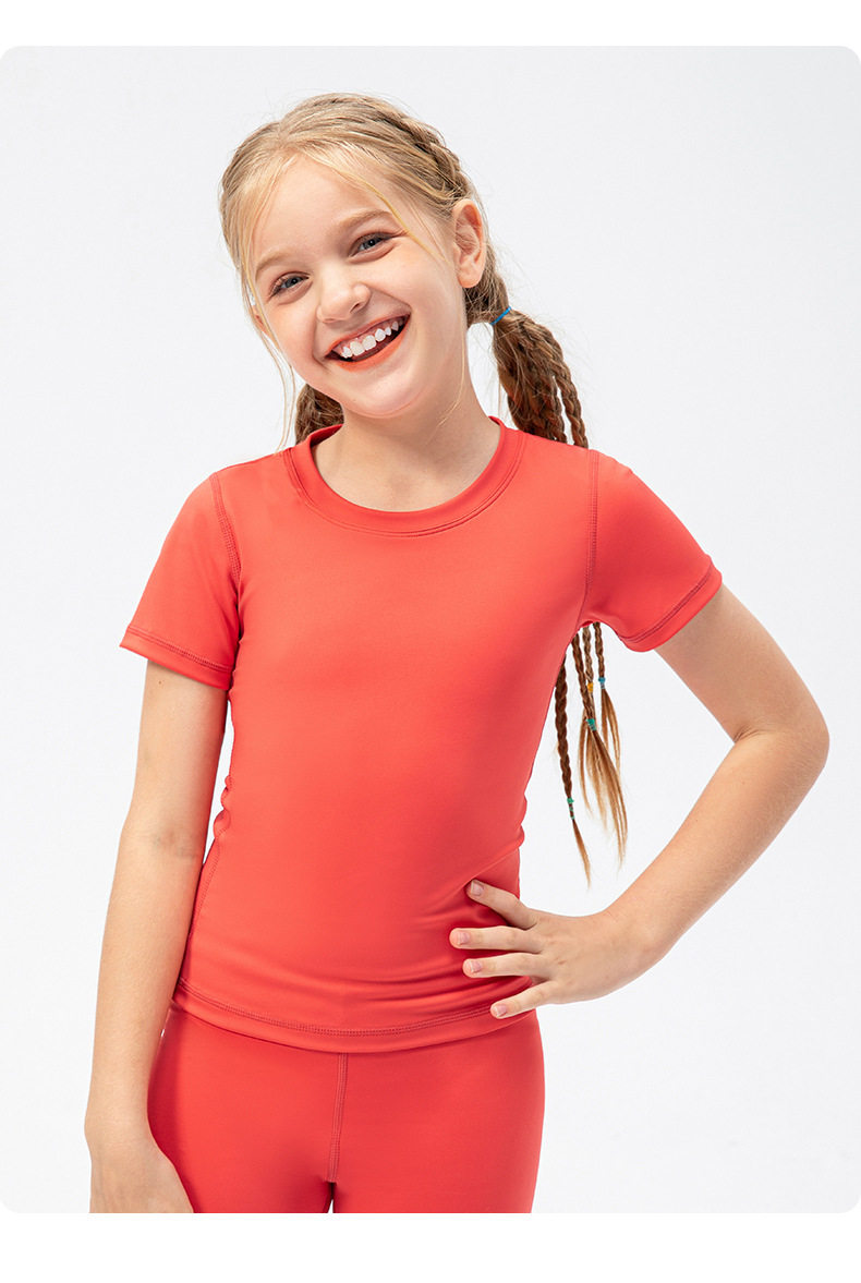 New Girls' Summer Sports Short-sleeved Skin-friendly Breathable Children's Dress Dance Yoga Training Top T-shirt 23207