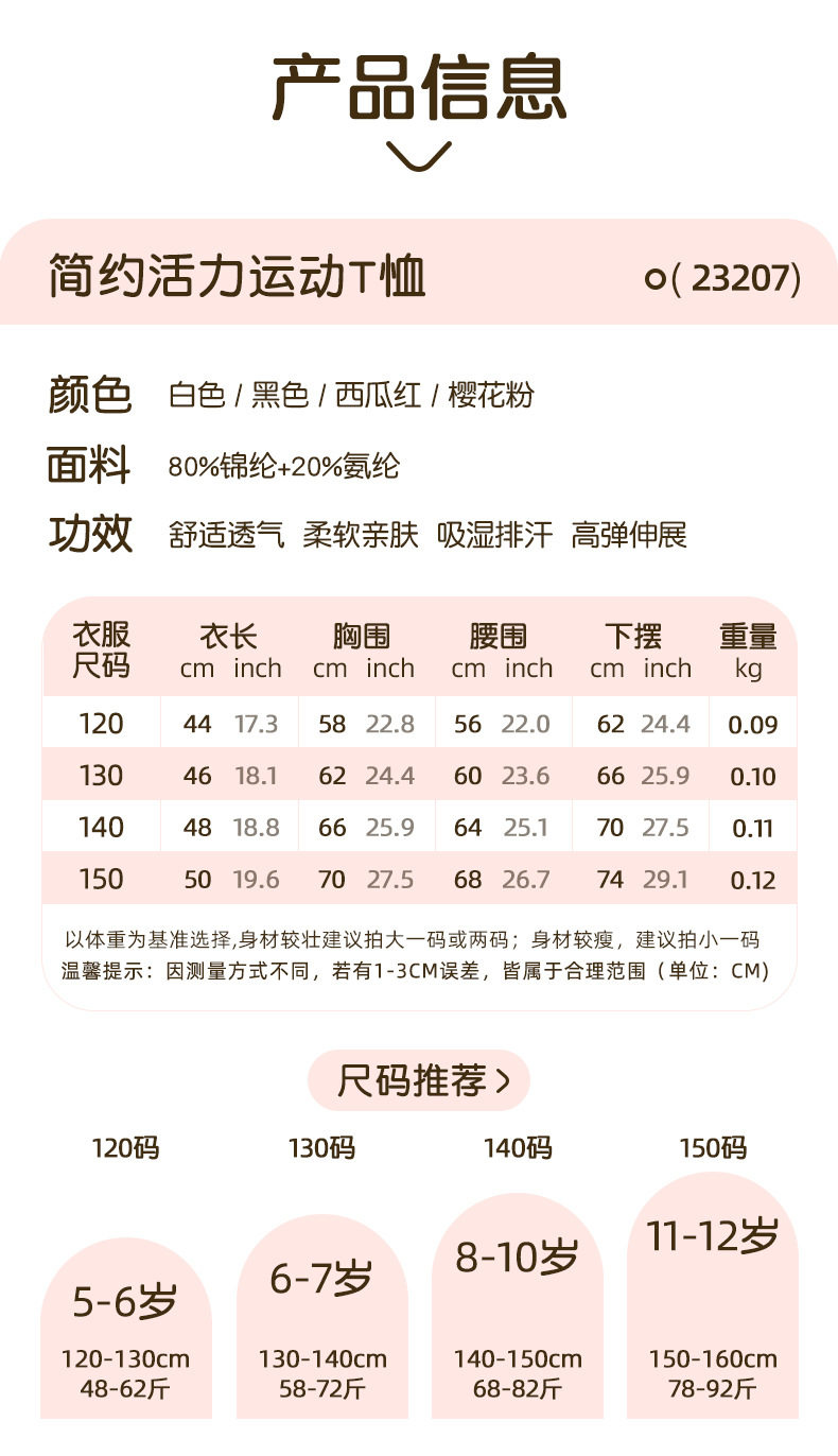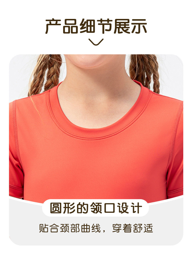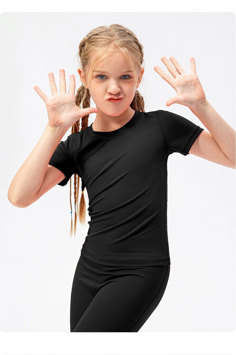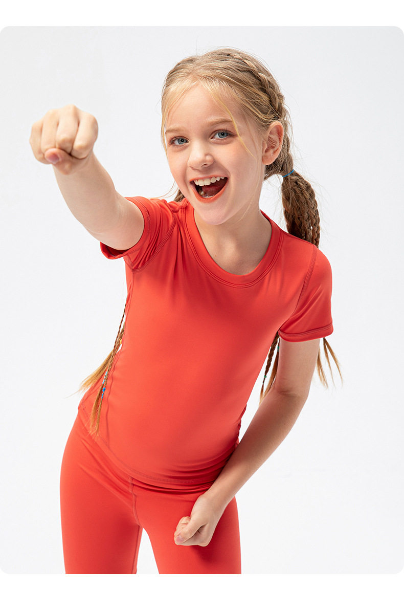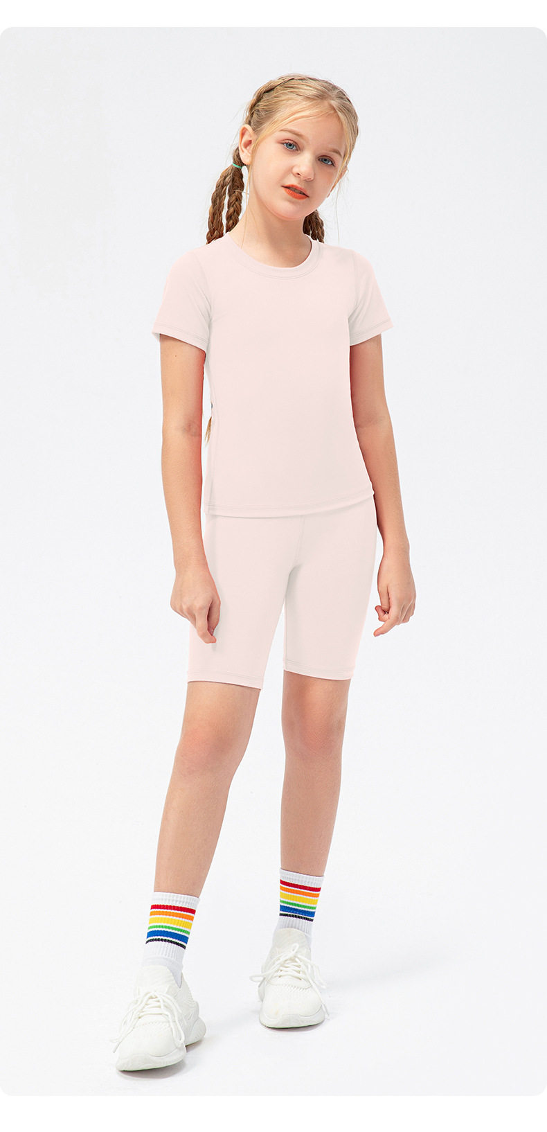 New Girls' Summer Sports Short-sleeved Skin-friendly Breathable Children's Dress Dance Yoga Training Top T-shirt 23207