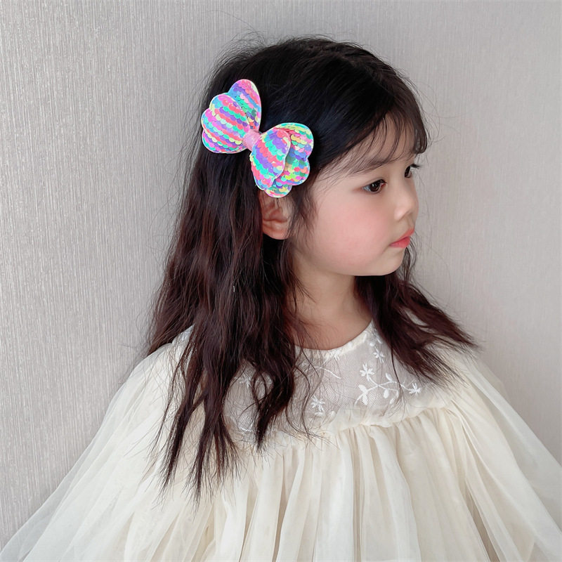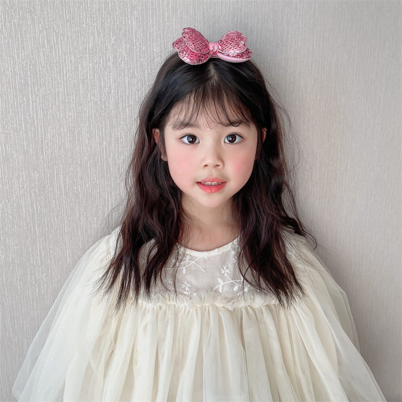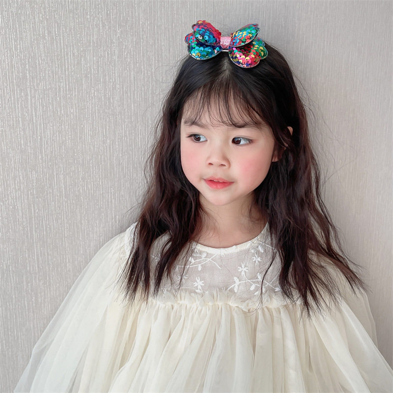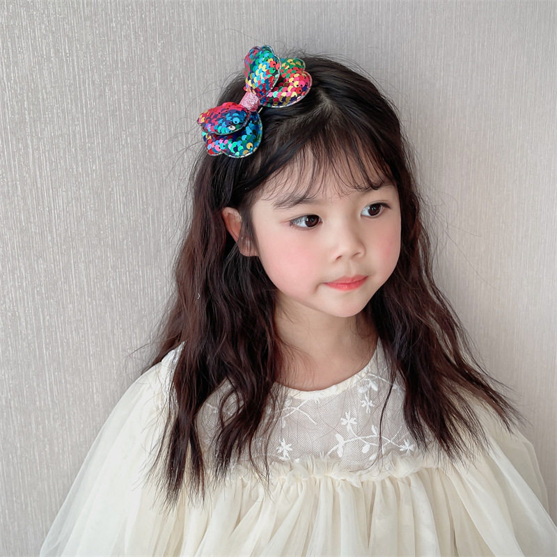 Children's Hairpin Korean-style Double-layer Bow Sequin Girl's Performance Side Clip Girl's Meatball Head Cute Sweet Hairpin