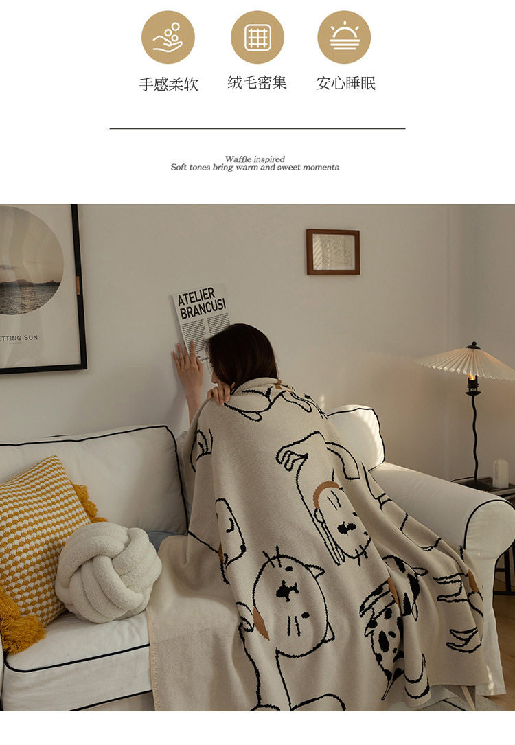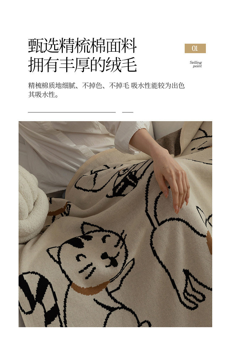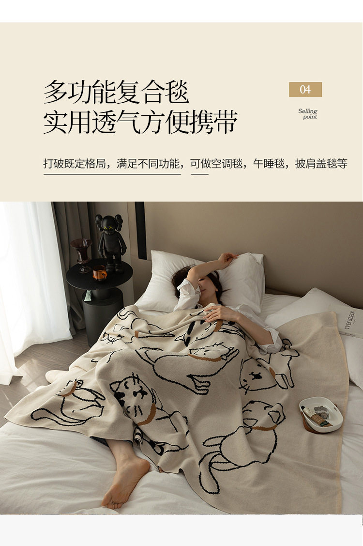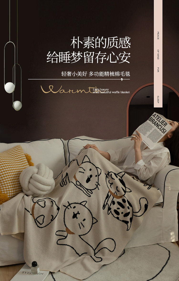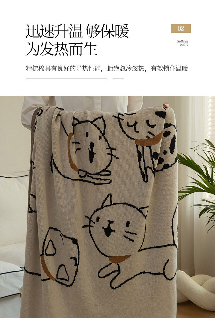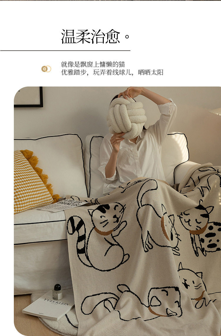 Class a Pure Cotton Knitted Jacquard Cute Cat Sofa Blanket Air Conditioning Office Nap Blanket Casual Pure Cotton Throw Blanket
