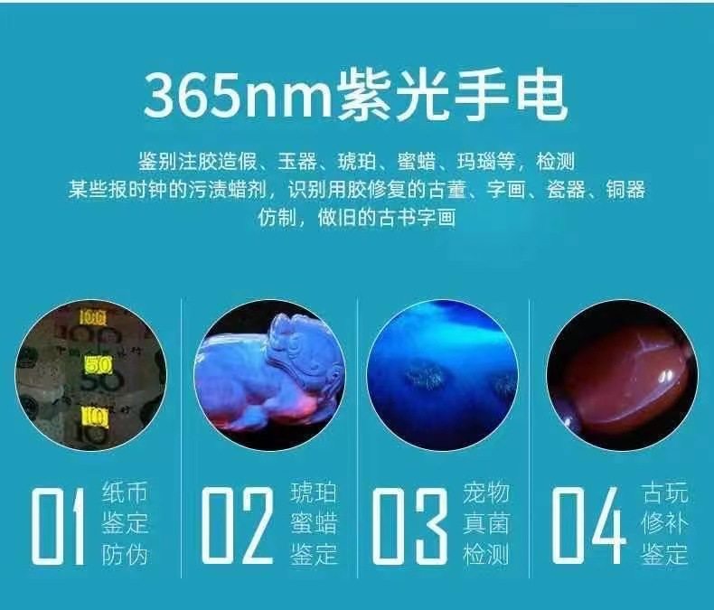 | Color | 365 purple light (Mini),365 purple light (standard),395 white light lens (not according to Cat Moss) |