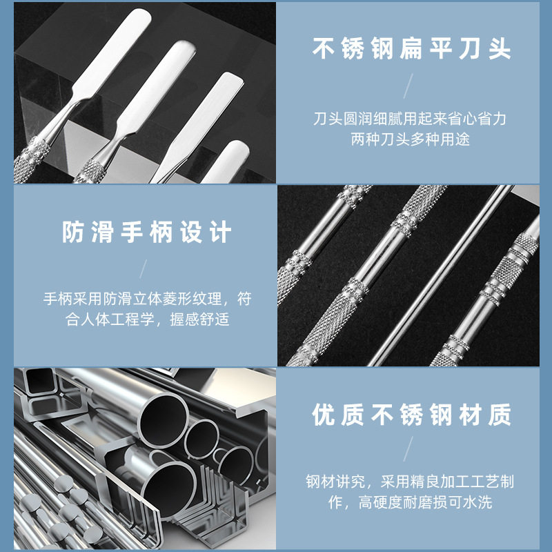 | Specification | Acrylic handle foundation spatula,Rosewood + hose packaging,161mm304 bevel head,161mm420 bevel head,Silver 15cm stainless steel embossing rod,Rose gold 15cm stainless steel embossing rod,Gold 15cm stainless steel embossing rod,11.5cm color stick,15cm embossing stick,16cm color stick,143mm single head spatula,Color titanium color 15cm professional color stick,1 piece of 420 stainless steel + 1 piece of pear wood pole,Rose gold 420 stainless steel color stick,Gold 420 stainless steel color stick,420 material stainless steel color mixing stick with holes,Foundation scraper,420 stainless steel single head palette spatula,Original color stainless steel glue stick,Original color 420 short color stick |