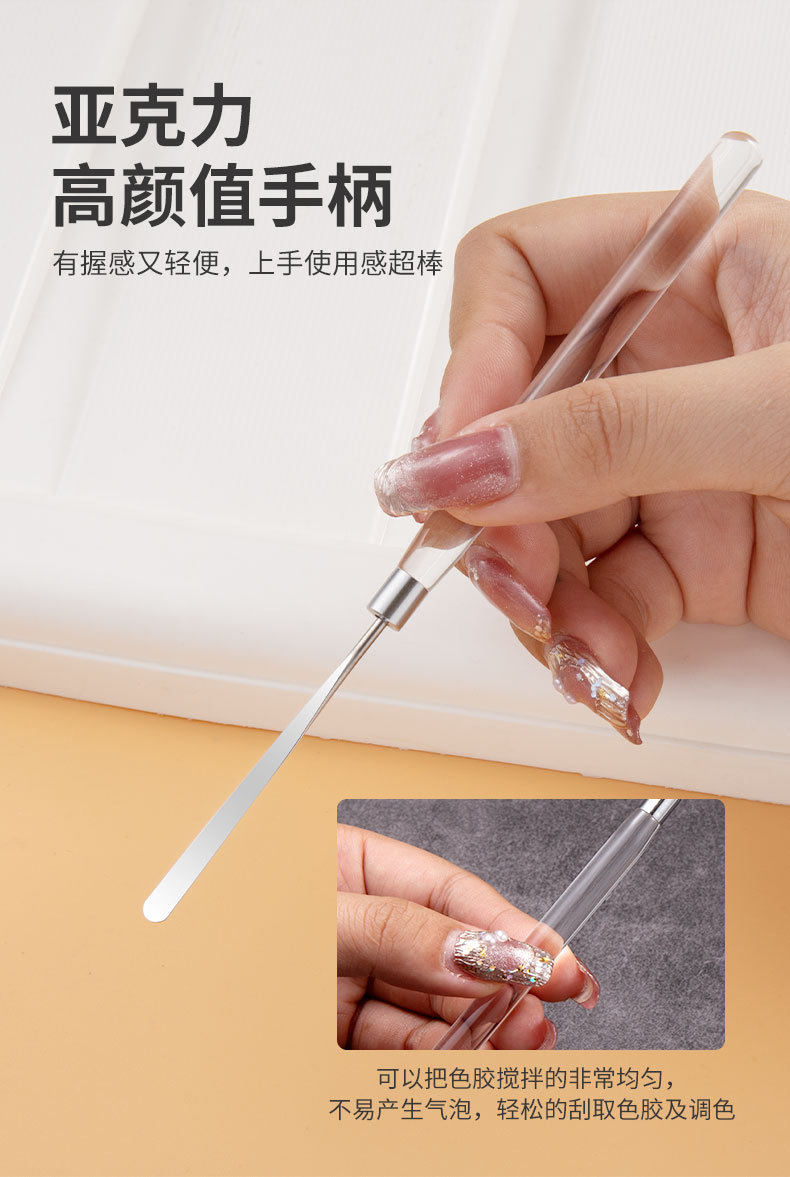 New Japanese-Style Nail Art Color Mixing Stick, Rosewood Stainless Steel Nail Polish Gel Pigment Mixing Stick