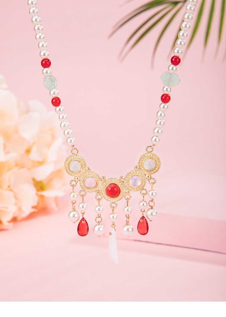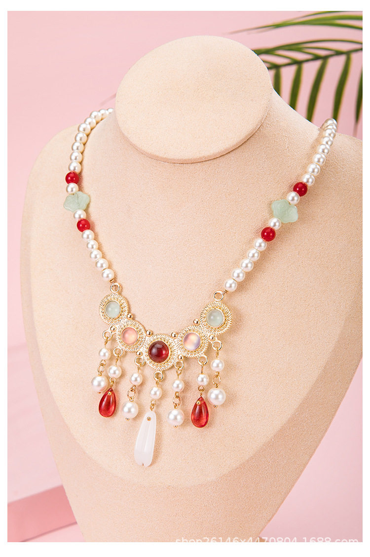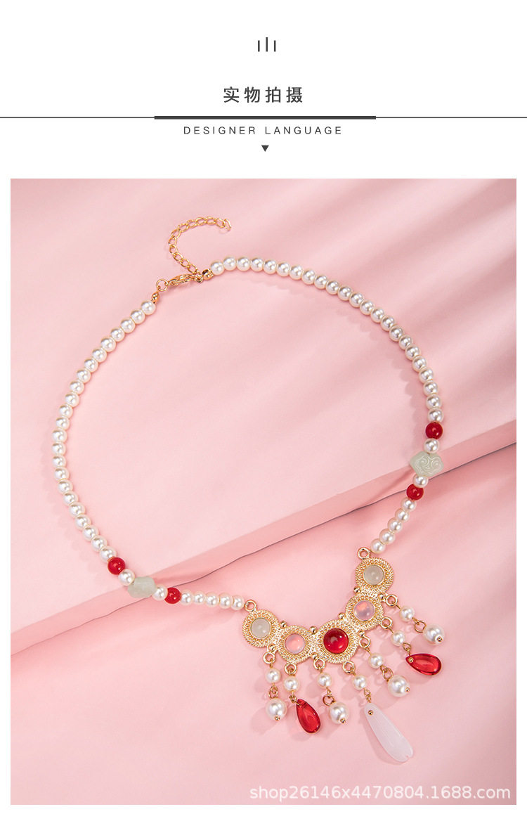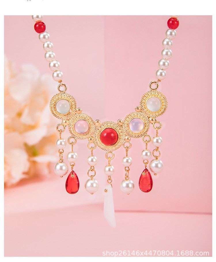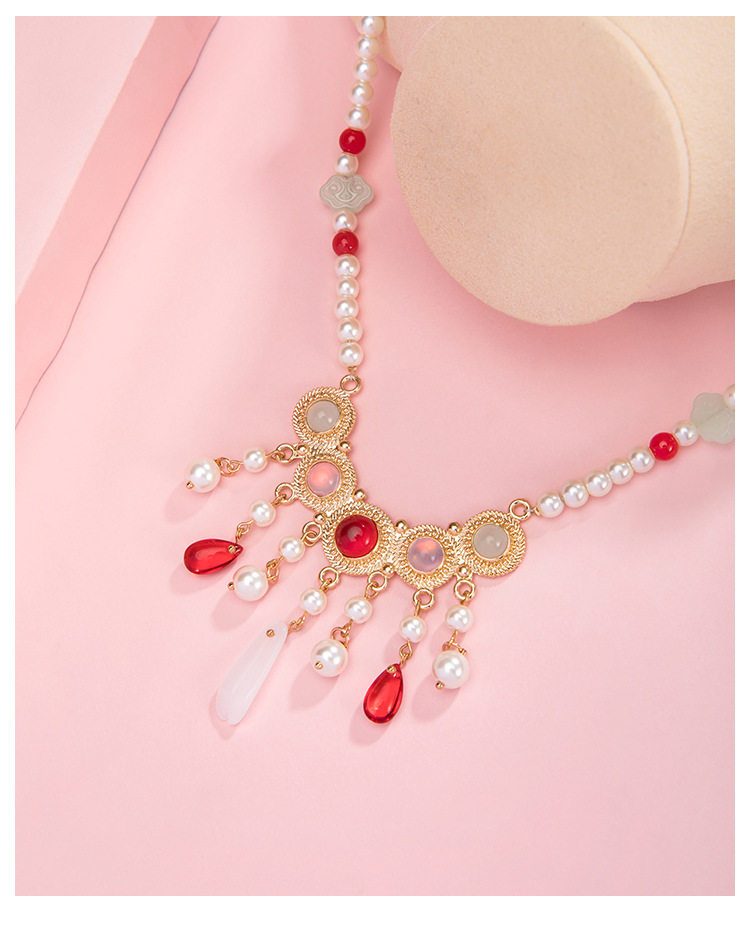 Clearance Necklace Collection Hairpin Niang Antique Han Clothing Wreaths Red Festive Pearl Pendant New Chinese Style Horse Face Skirt Accessories