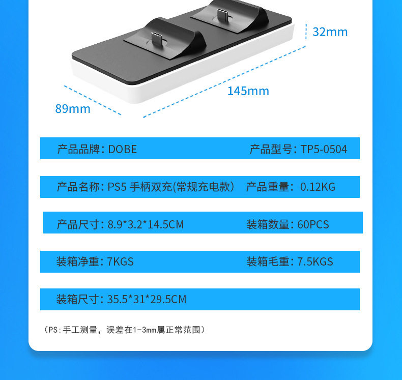 | Packing List | Color box * 1 + handle double charge * 1 + data line * 1 |