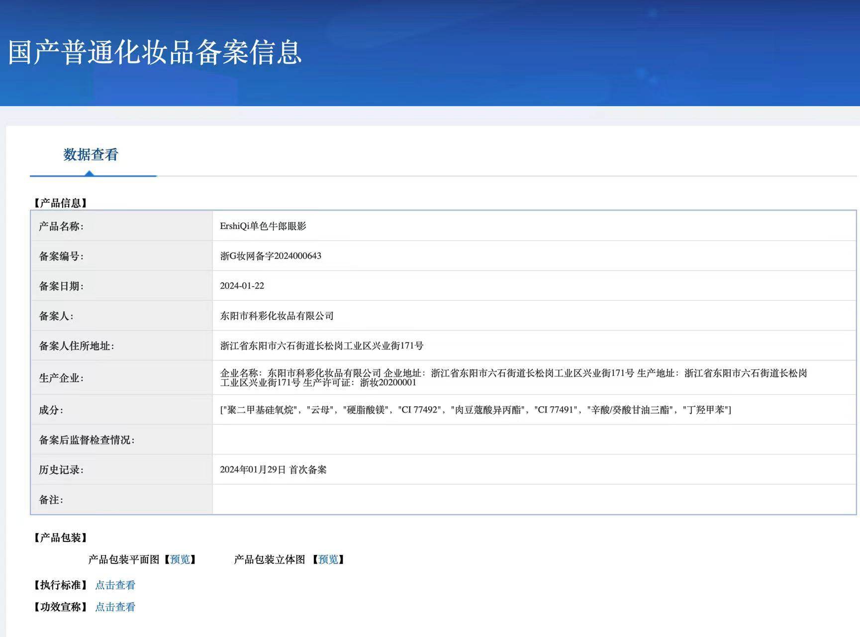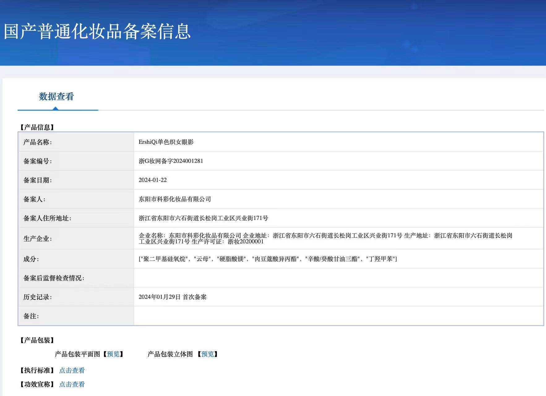 | Production license number | Zhejiang makeup 20200027 |