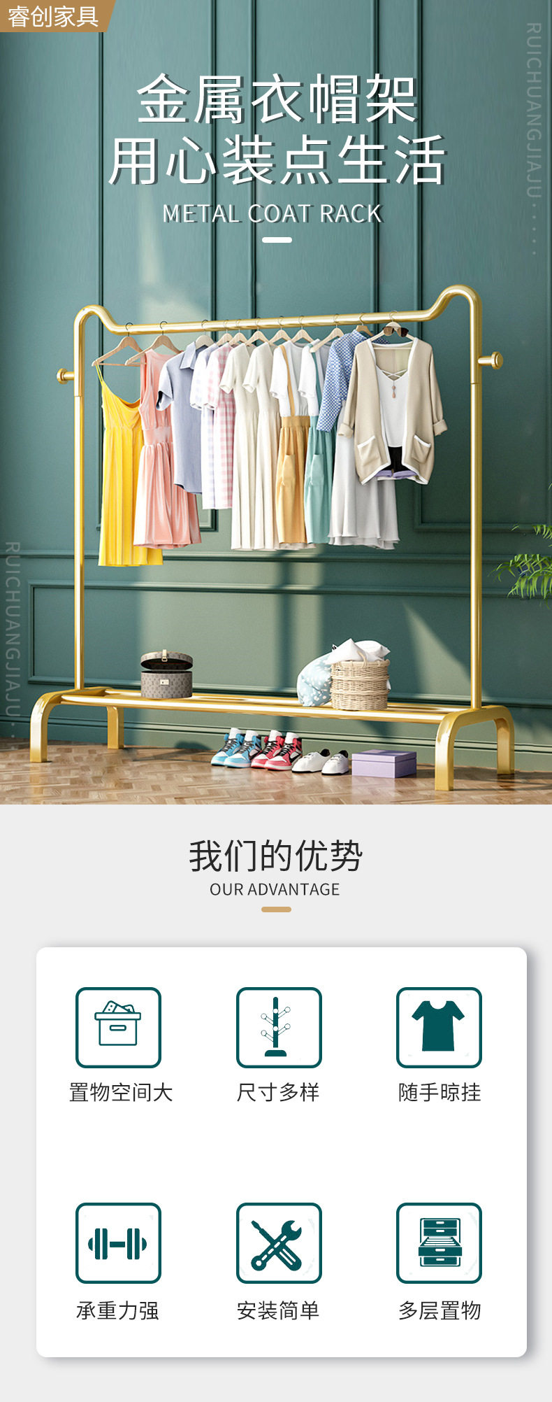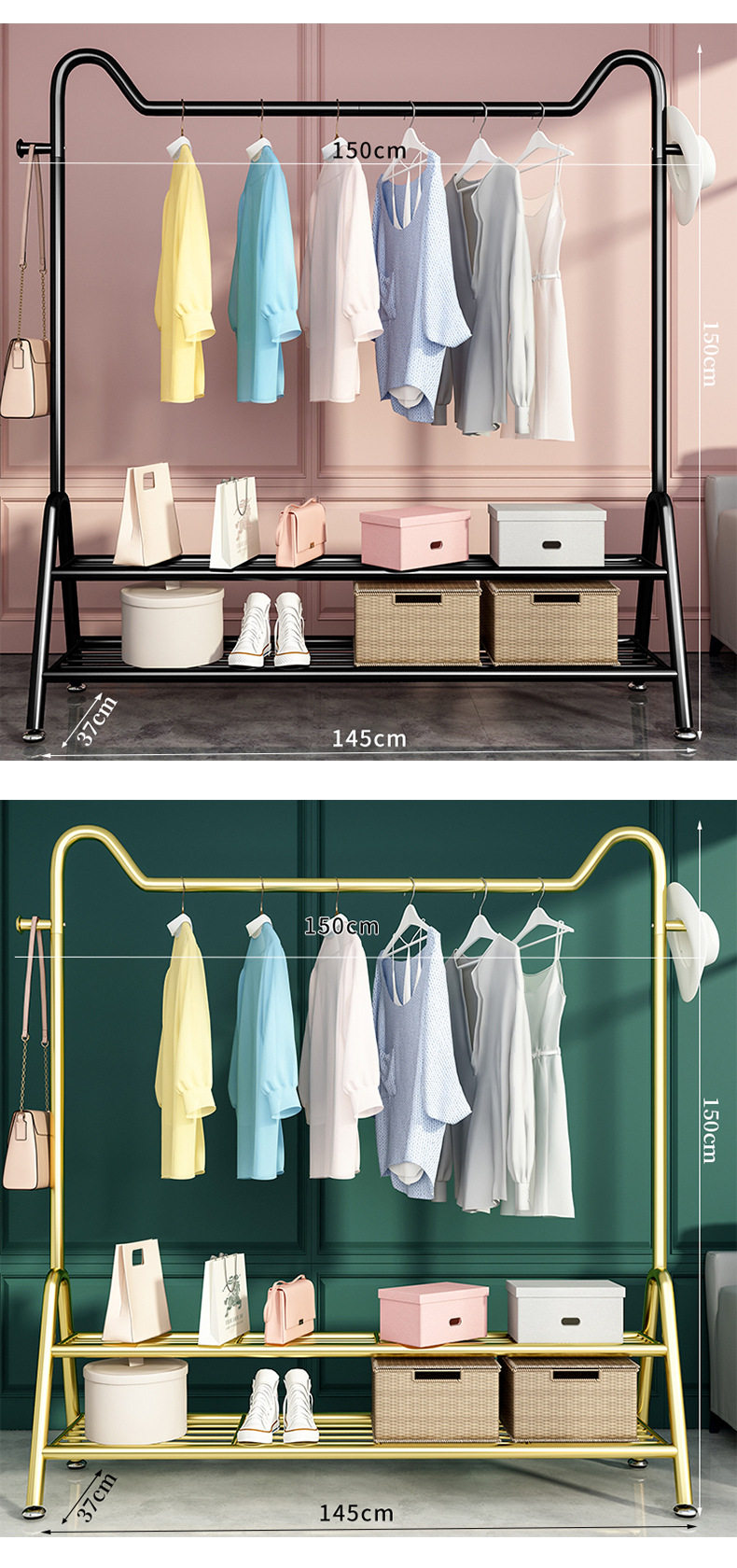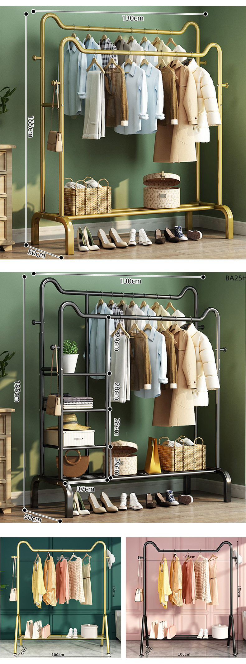 Floor-type Drying Rack Indoor Simple Coat Rack Household Bedroom Hanger Thickened Double-pole Balcony Storage Rack