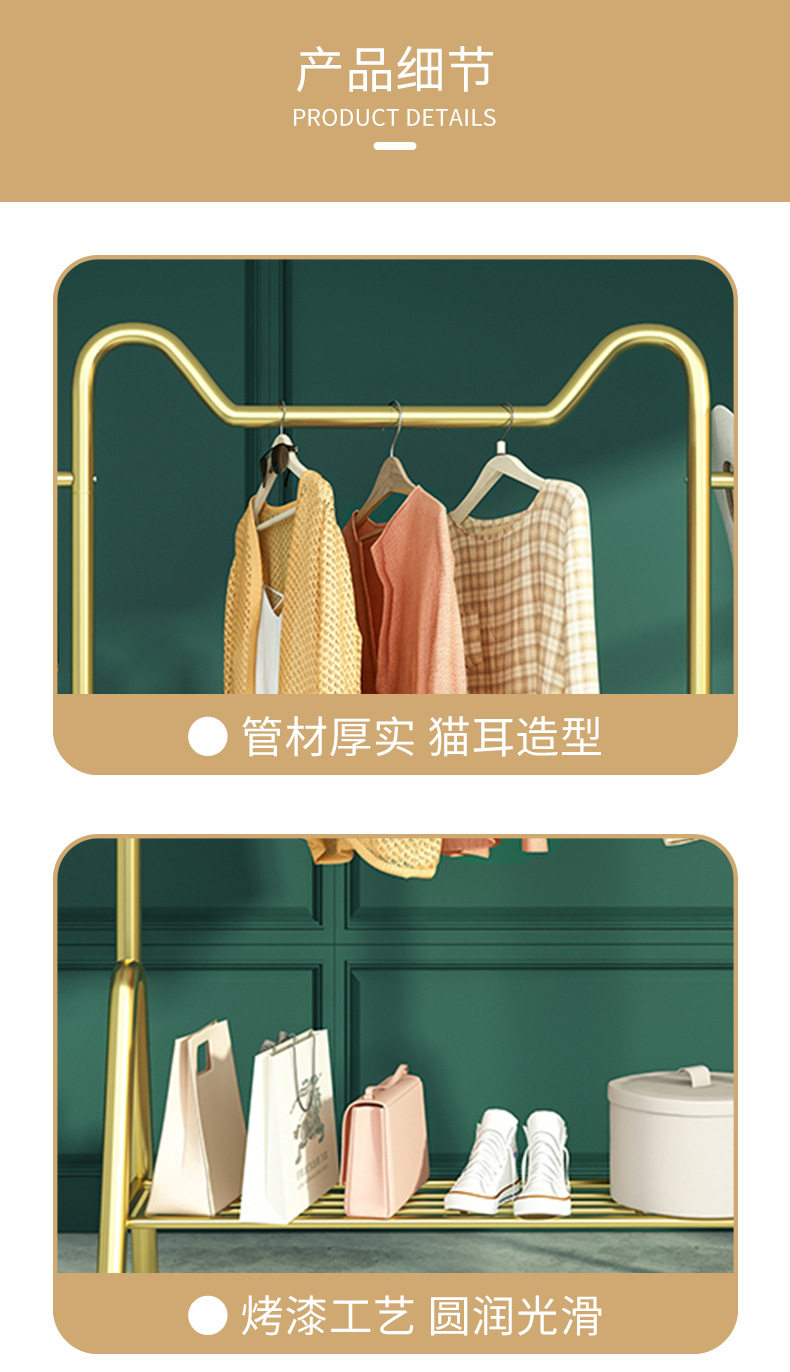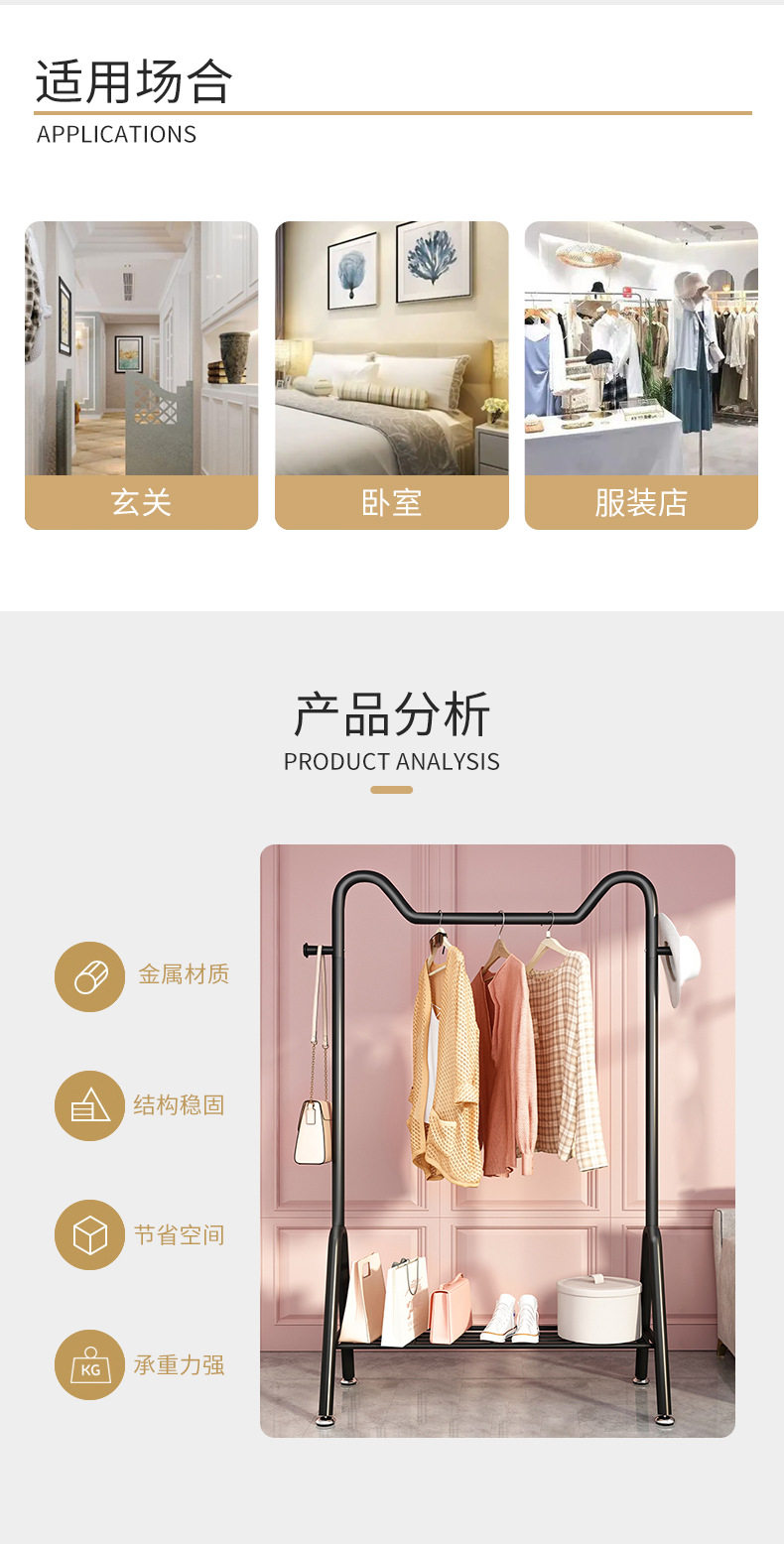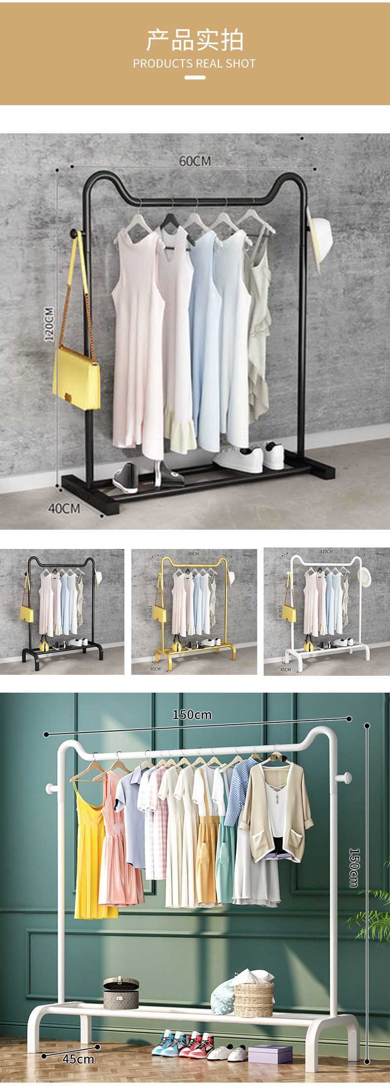 Floor-type Drying Rack Indoor Simple Coat Rack Household Bedroom Hanger Thickened Double-pole Balcony Storage Rack
