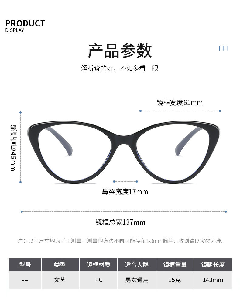 | Frame color | Bright Black,Sand Black,Transparent pink,Transparent tea,Transparent Gray,Leopard print,Black glasses bag,White glasses bag |