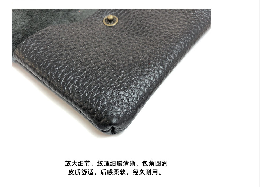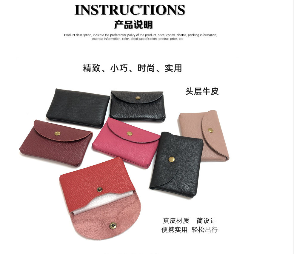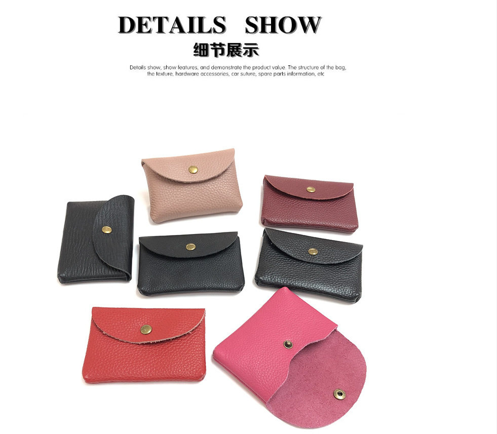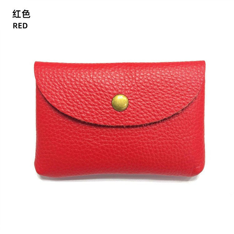 Top Layer Cowhide Fashionable Coin Bag ID Card Bag Mini Portable Litchi Pattern Genuine Leather Card Bag for Men and Women