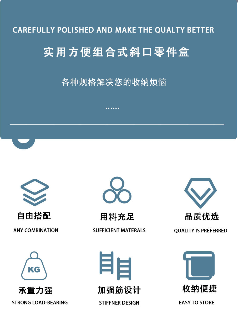 Parts Box Storage Plastic Screw Accessories Storage Box Oblique Tool Storage Box Shelf Material Box Components