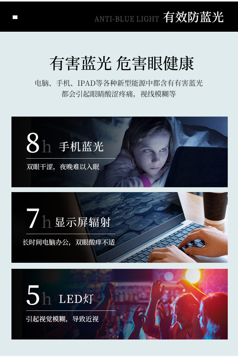 | Lens color | Anti-blue light lens |