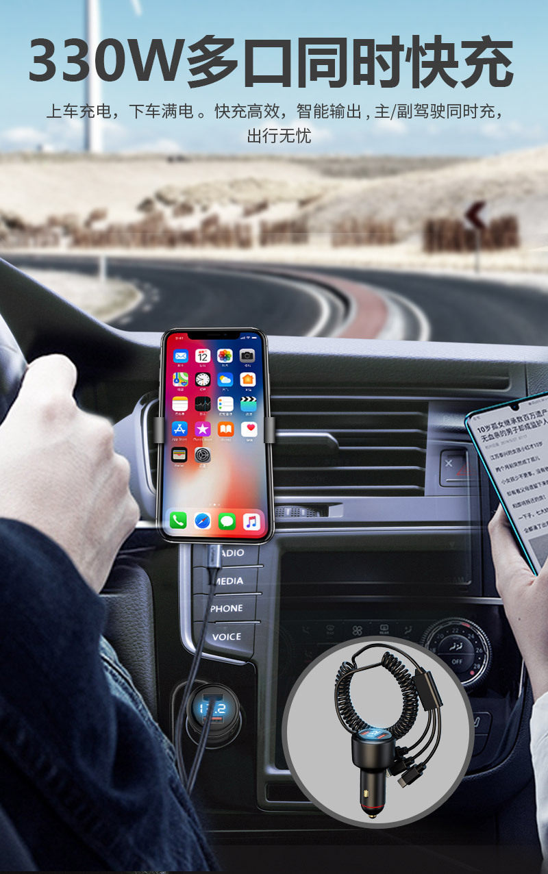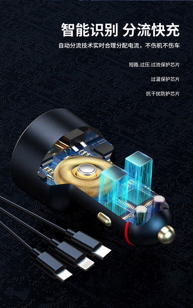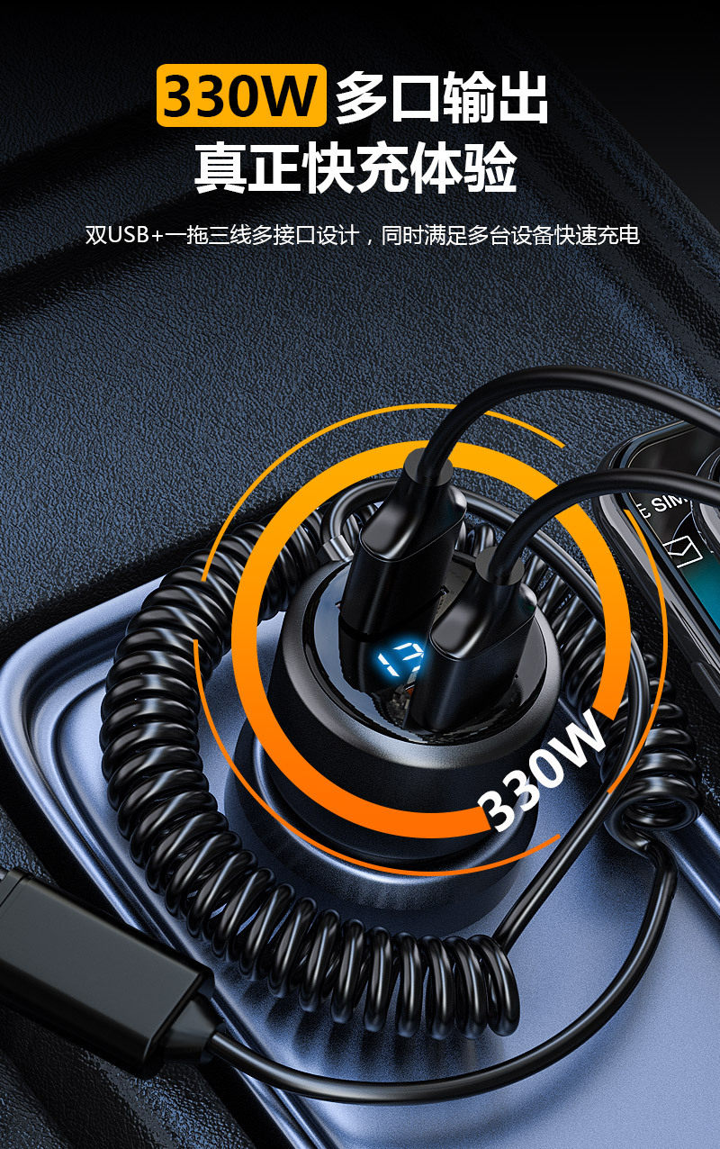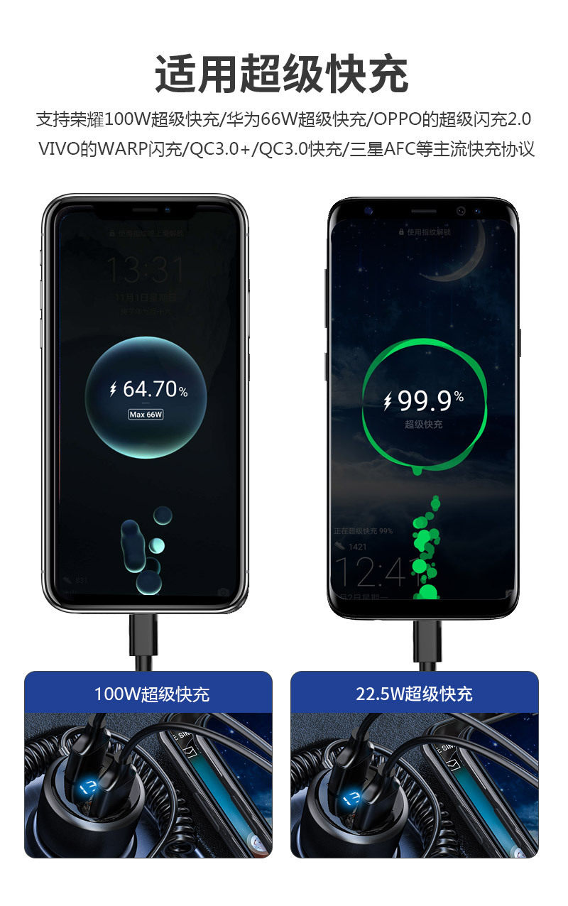 New 5a car charger one drag three 66w super fast charge multi-function cigarette lighter 65w flash charge 100w car charger