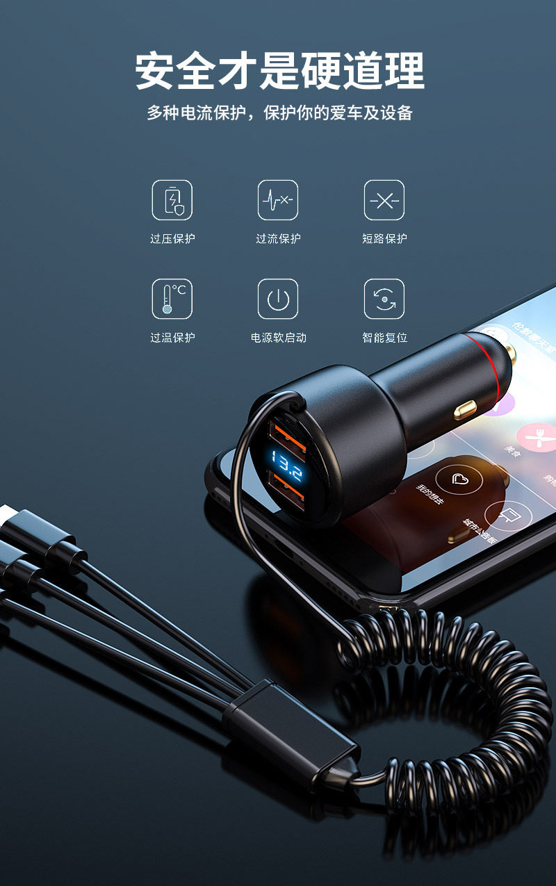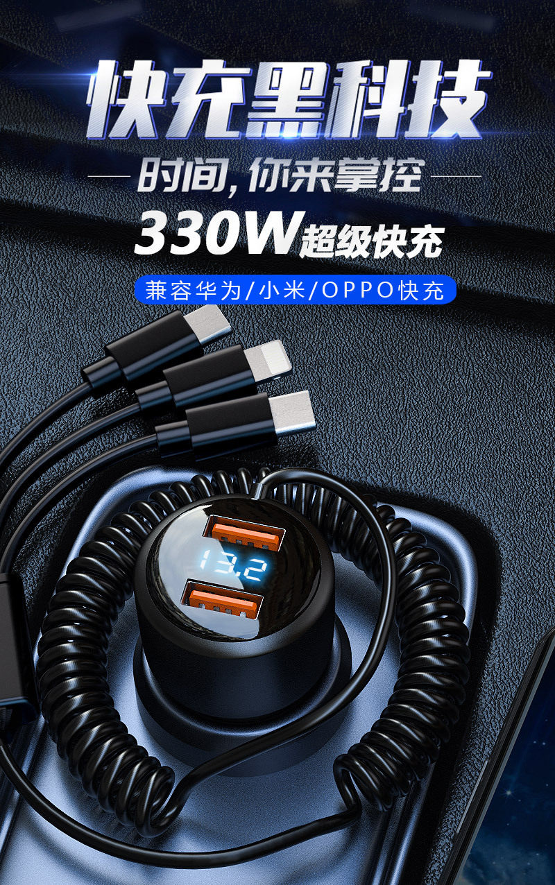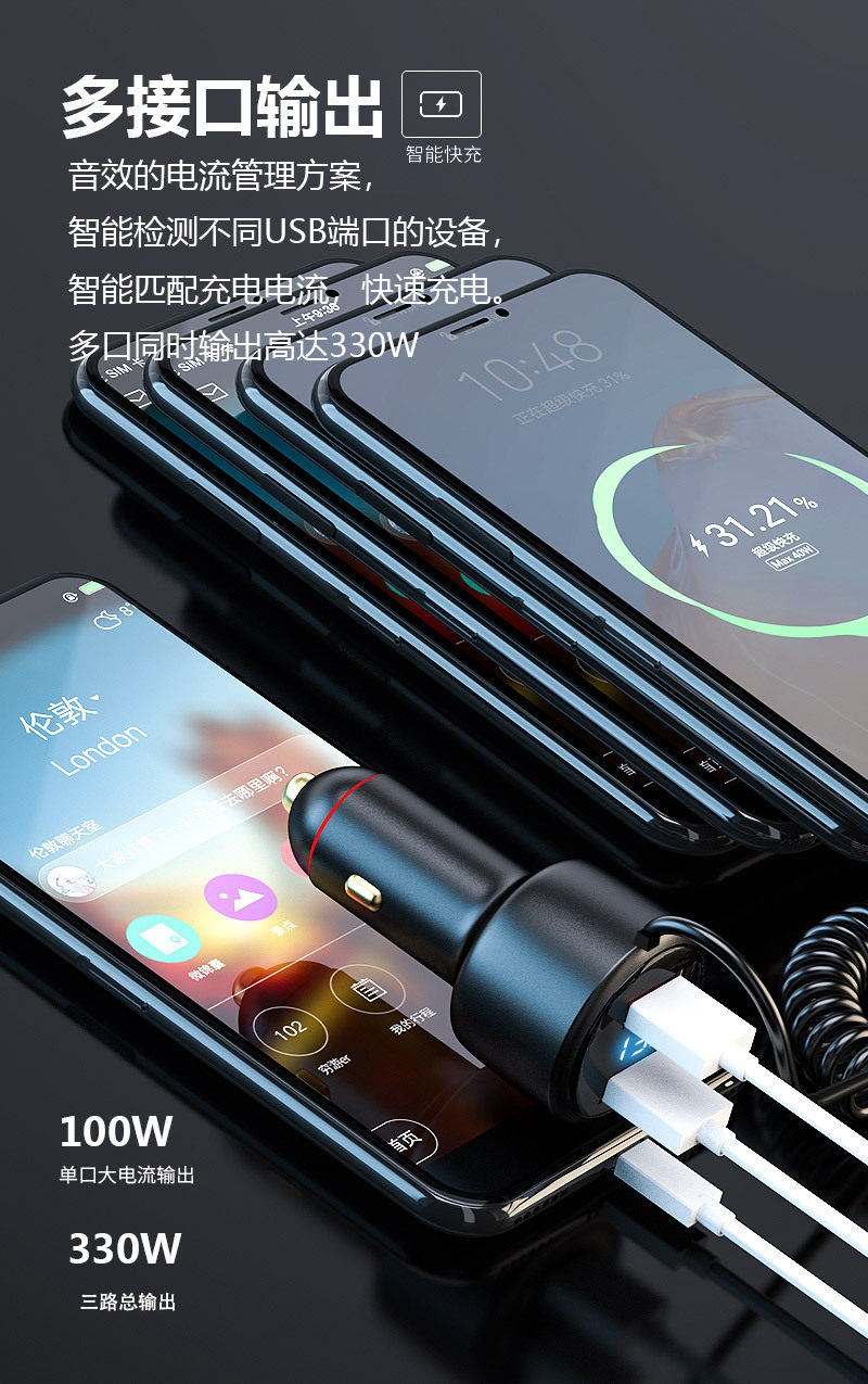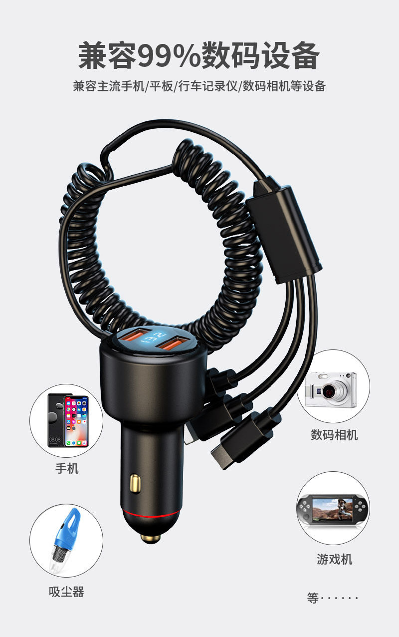 New 5a car charger one drag three 66w super fast charge multi-function cigarette lighter 65w flash charge 100w car charger