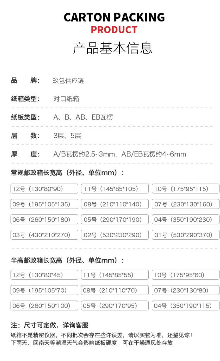 | Specifications | No. 2 (530*230*290mm),No. 10 (175*95*115mm),No. 9 (195*105*135mm),No. 3 (430*210*270mm),No. 5 (290*170*190mm),No. 8 (210*110*140mm),No. 7 (230*130*160mm),No. 11 (145*85*105mm),No. 4 (350*190*230mm),No. 6 (260*150*180mm),No. 12 (130*80*90mm),No. 1 (530*290*370mm),B60(600*400*500mm),Z7(400*400*400mm),B50(500*400*400mm),Z8(450*450*450mm) |