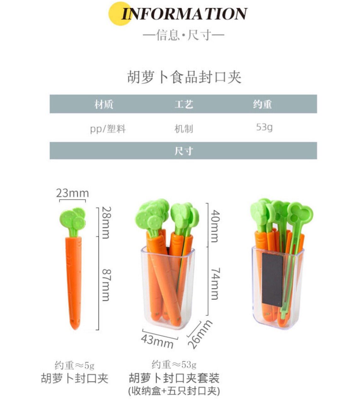 Carrot Sealing Clip Food Bag Clip Kitchen Sealing Fresh-keeping Small Fridge Snack Tea Sealing Clip