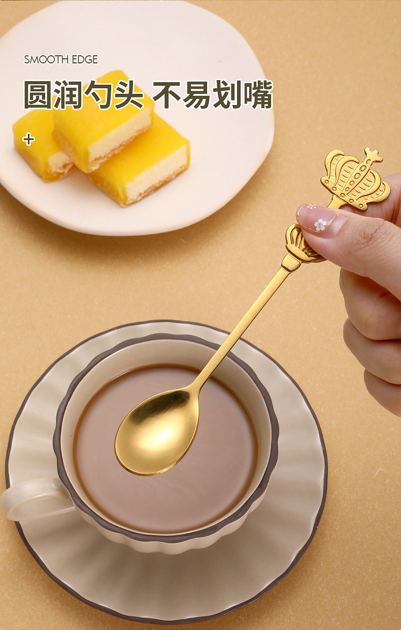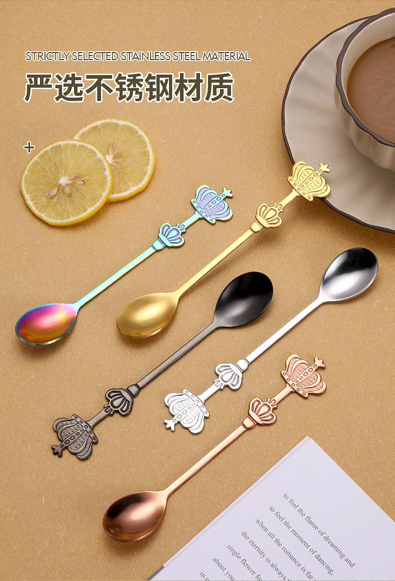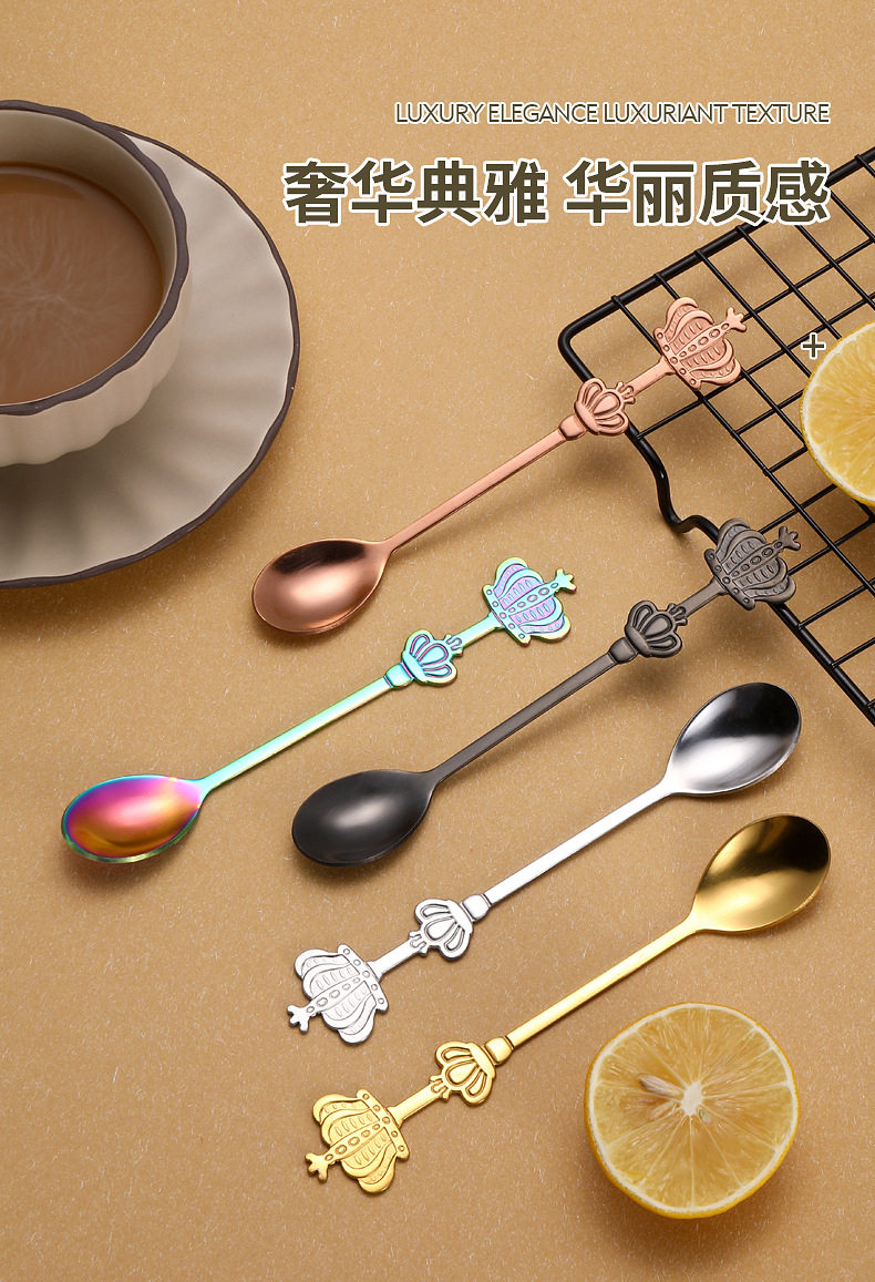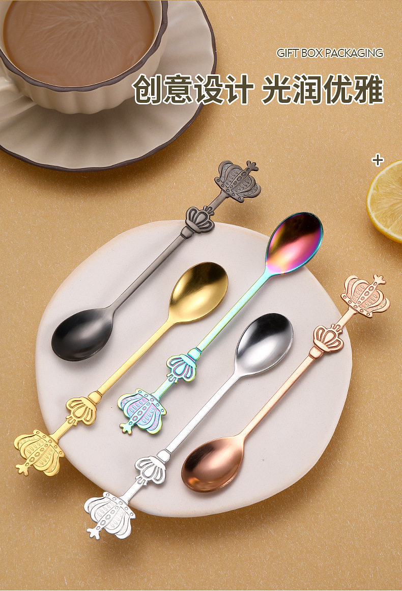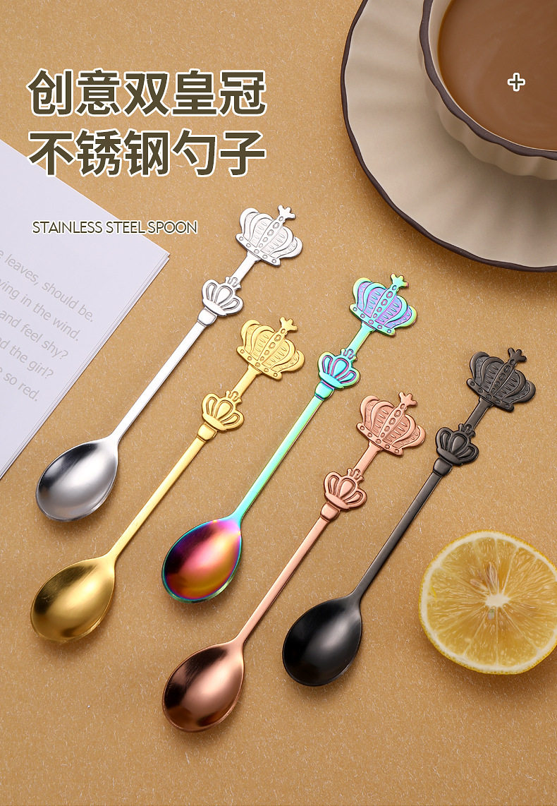 Creative Double Crown stainless steel spoon wholesale High-looking gift coffee spoon titanium-plated light luxury palace style soup spoon