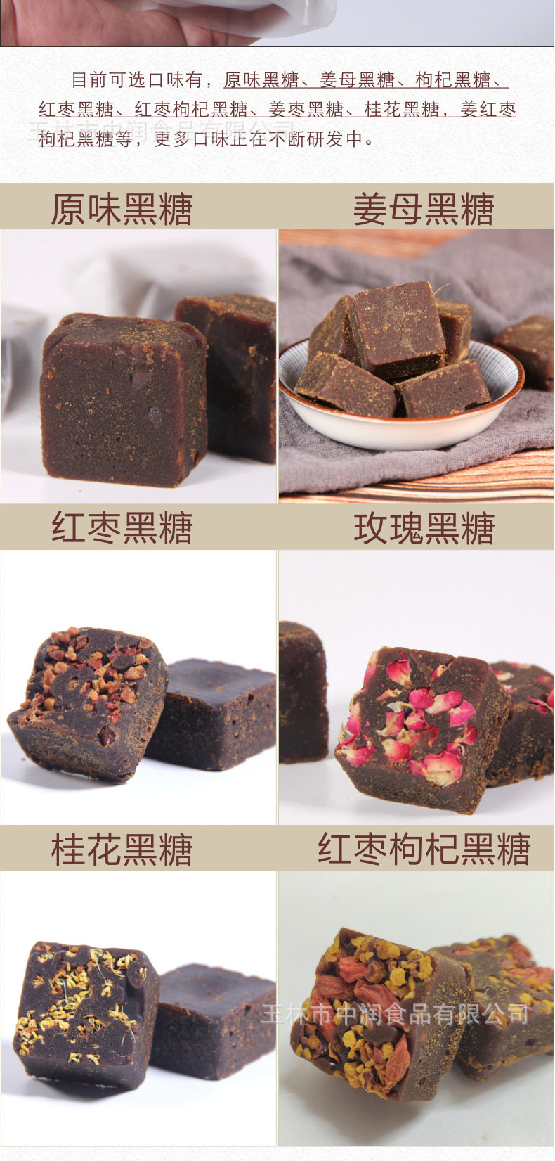 | Packaging specifications | Original brown sugar half a catty frosted independent bag,Ginger brown sugar half a catty frosted independent bag,Half a catty ginger, jujube and brown sugar, frosted independent bag,Original brown sugar in individual bags 0.5kg,Individually bagged ginger brown sugar 0.5kg,Individually bagged ginger and jujube brown sugar 0.5kg |