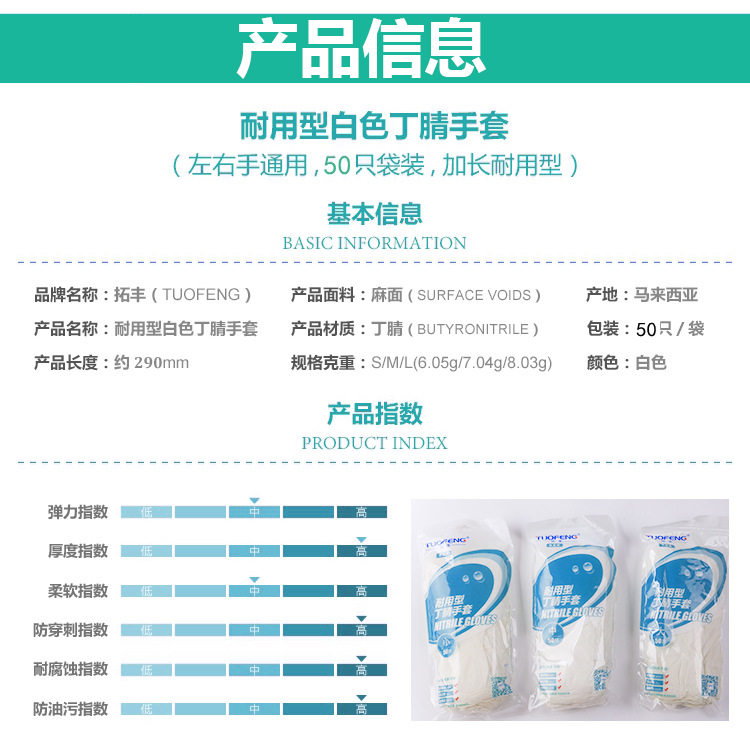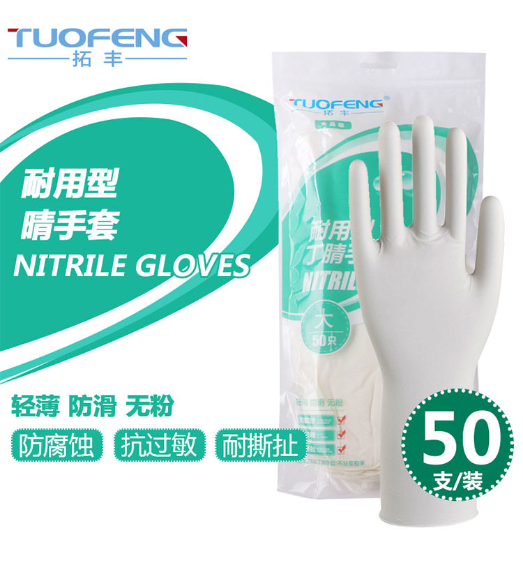 Tuofeng disposable durable nitrile rubber gloves latex lengthened food catering household kitchen waterproof cleaning
