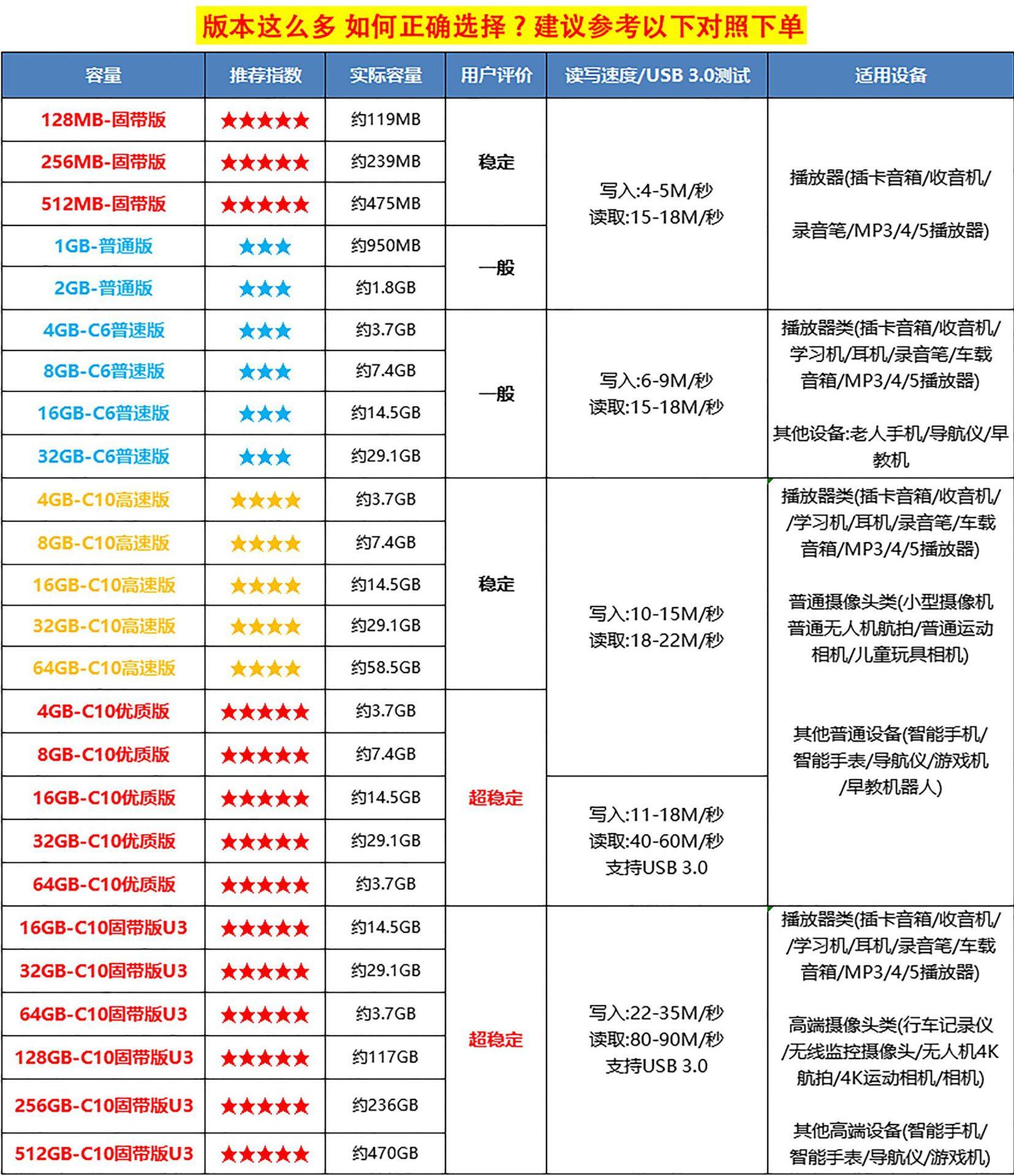 | Capacity | 4G-(dedicated to playback equipment),8G-(dedicated to playback equipment),16G-(dedicated to playback equipment),32G-(dedicated to playback equipment),64G-(dedicated to playback equipment),128G-(dedicated to playback equipment) |
