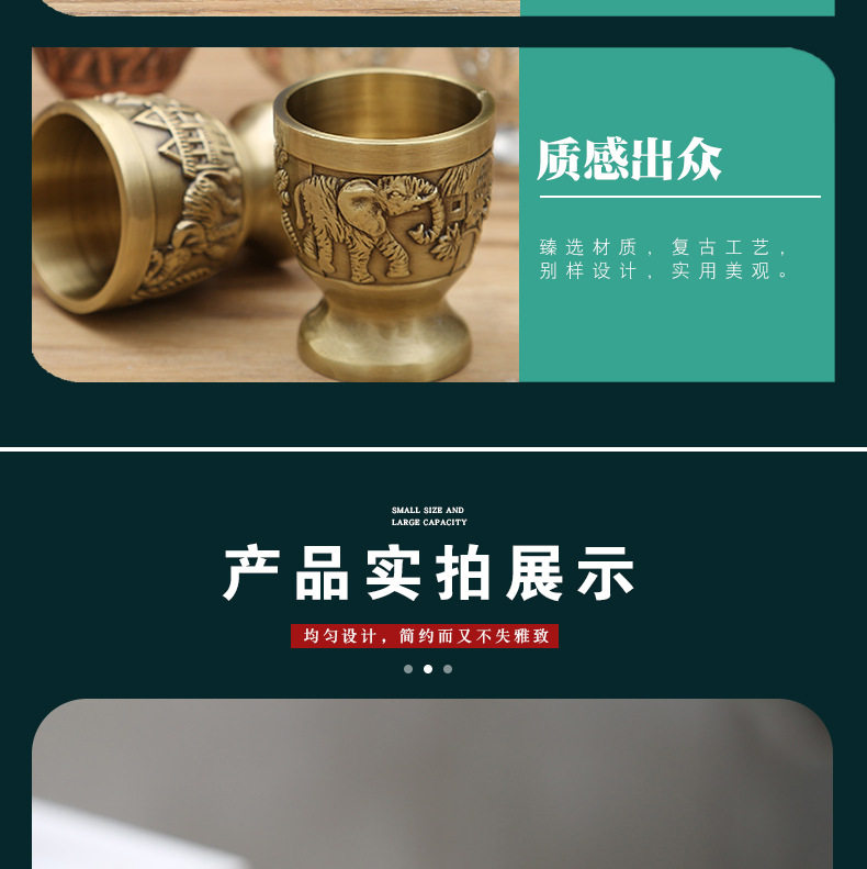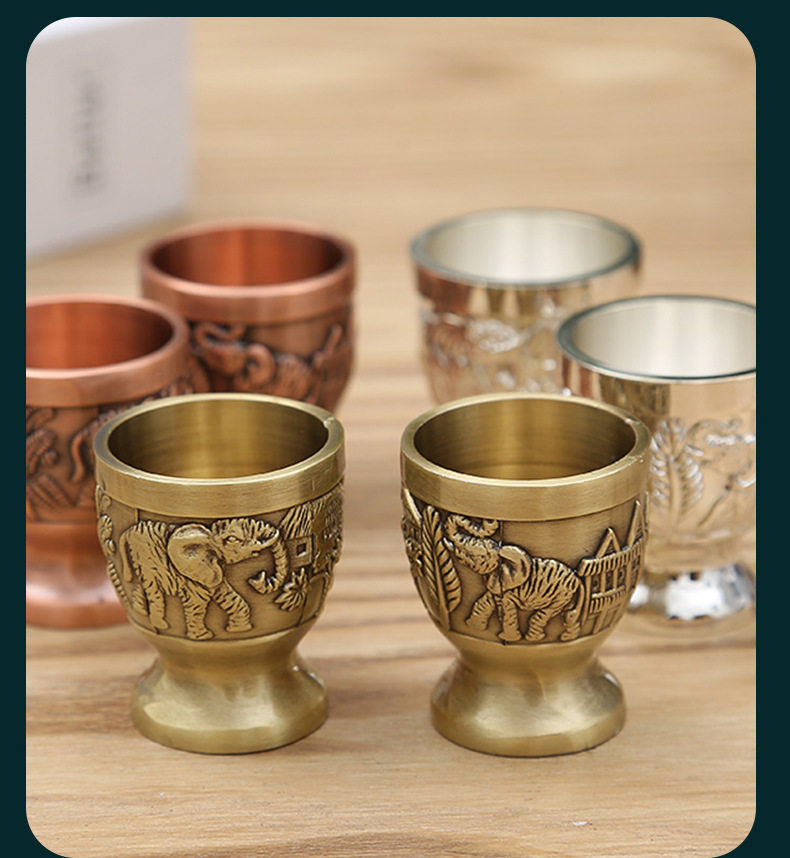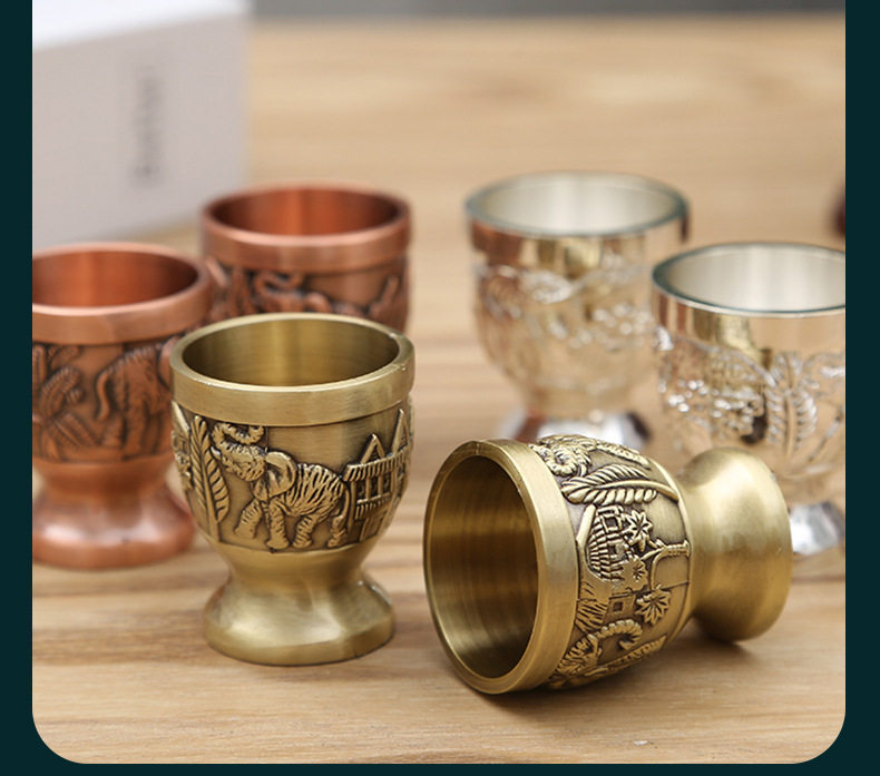 Vintage Home White Wine Cup Creative Small Cup Antique Spirits Cup High-grade One-piece Cup Antique Generation Copper Wine Cup Ornaments