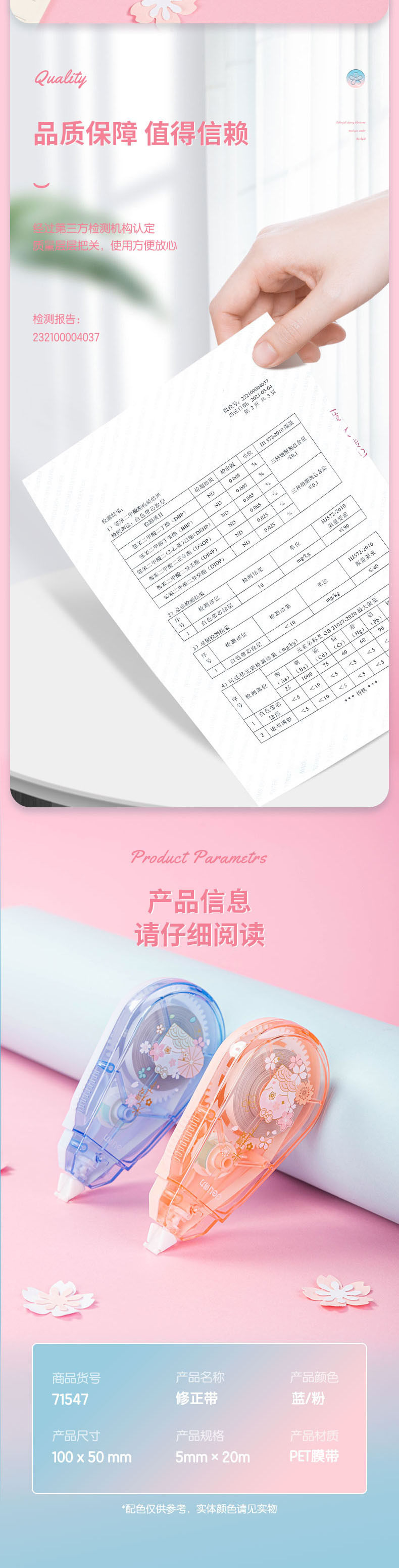 Deli 71547 Light Sakura 20m Correction Belt Source Deli Students Use Portable Correction Belt Smooth and Continuous