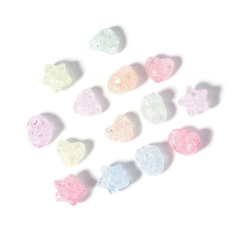 50 pcs/pack acrylic crack macaron color love five-pointed star transparent beaded diy hair rope bracelet wholesale