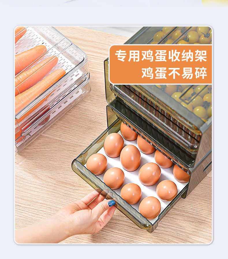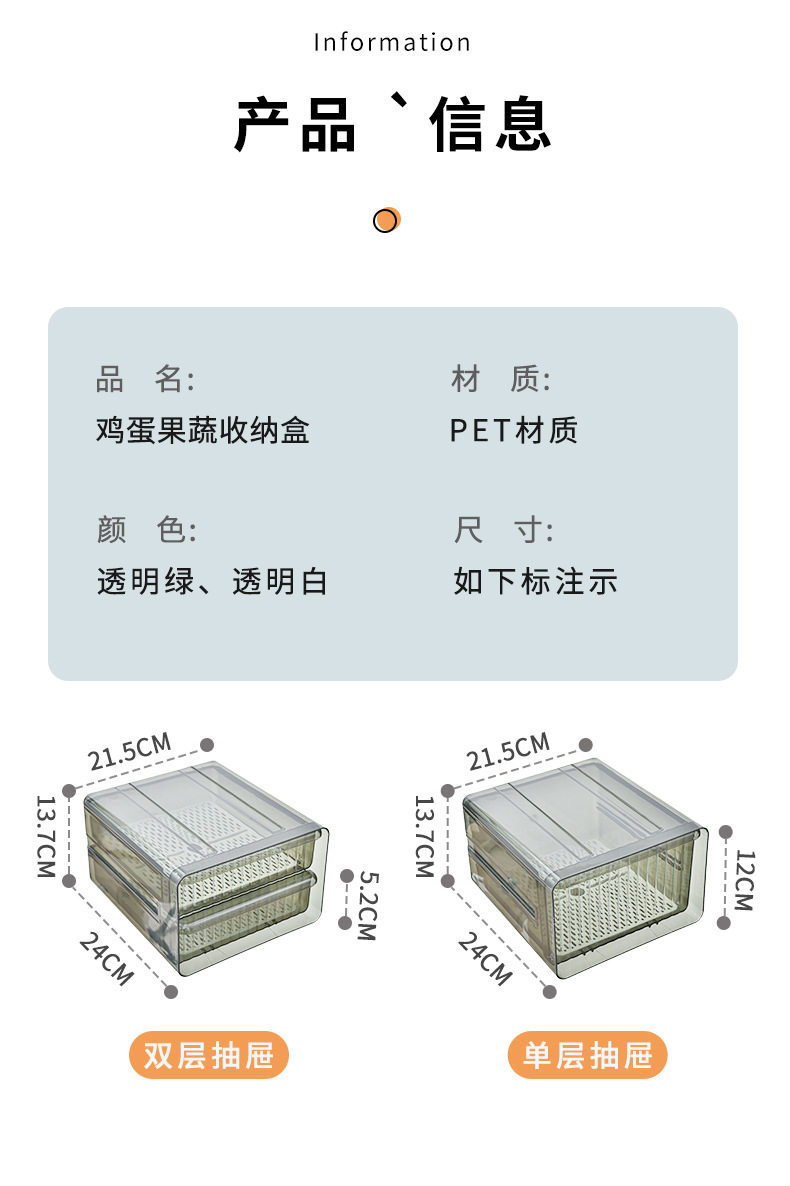 | Specifications | Single Layer Green Drawer Refrigerator Box,Double green drawer refrigerator box,Double-layer green drawer egg box,Single layer transparent color drawer refrigerator box,Double layer transparent color drawer refrigerator box,Double-layer transparent color drawer egg box |