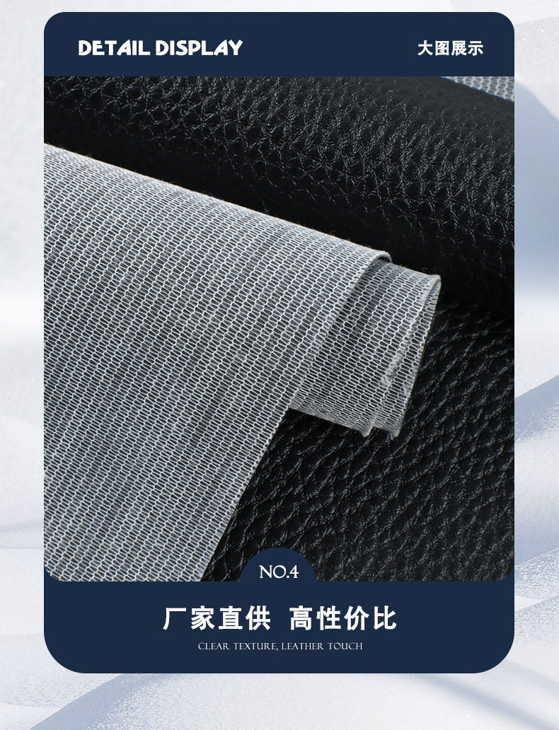 in stock PVC Leather Knitted Bottom Litchi Leather 0.5mm Small Litchi Black Sofa Cushion Leather