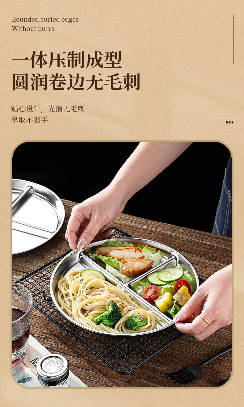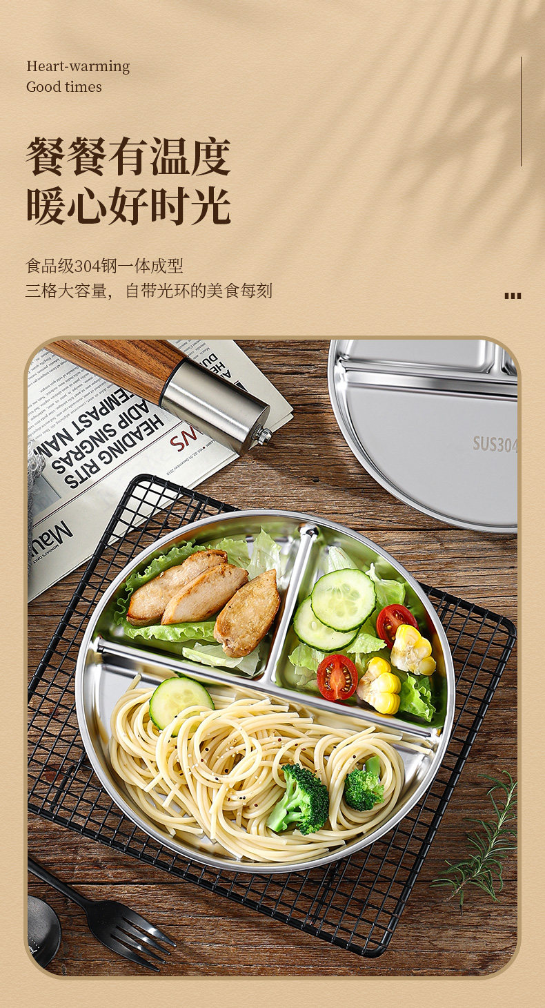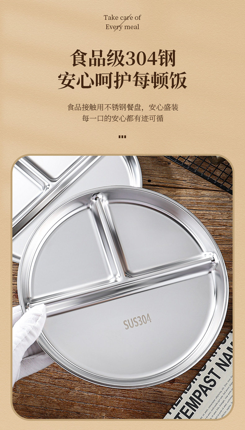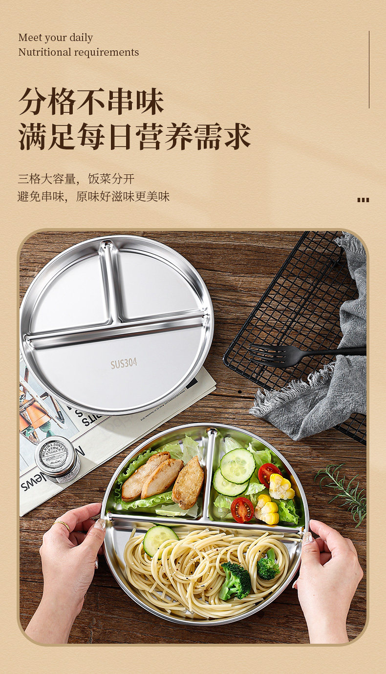 211 Fat-Reducing Meal Plate with Compartments 316 Stainless Steel Fitness One-Person Meal Quantitative Three-Compartment Meal Plate Daily Kitchen Wholesale