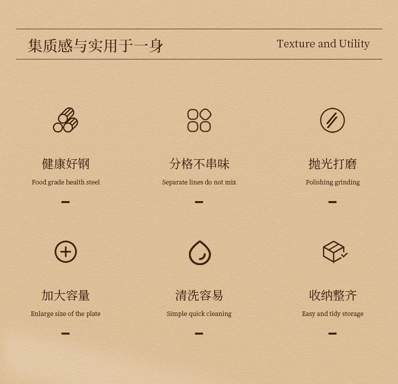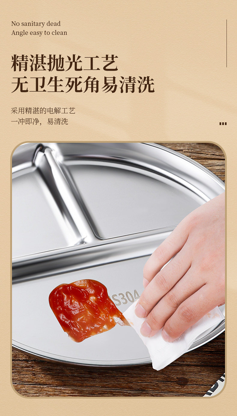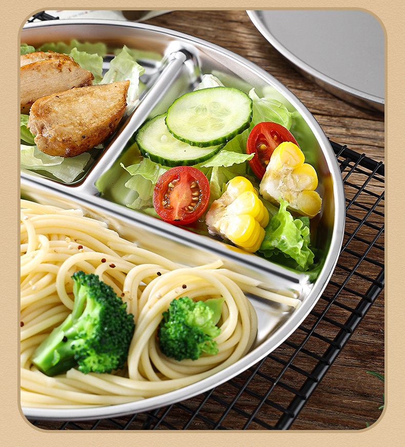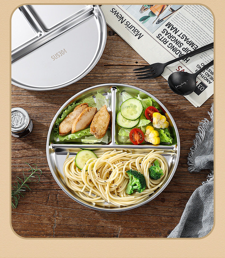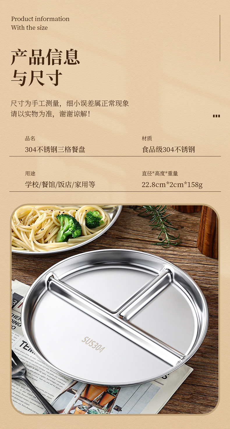 211 Fat-Reducing Meal Plate with Compartments 316 Stainless Steel Fitness One-Person Meal Quantitative Three-Compartment Meal Plate Daily Kitchen Wholesale