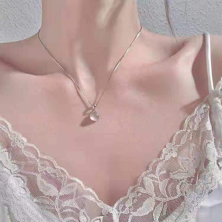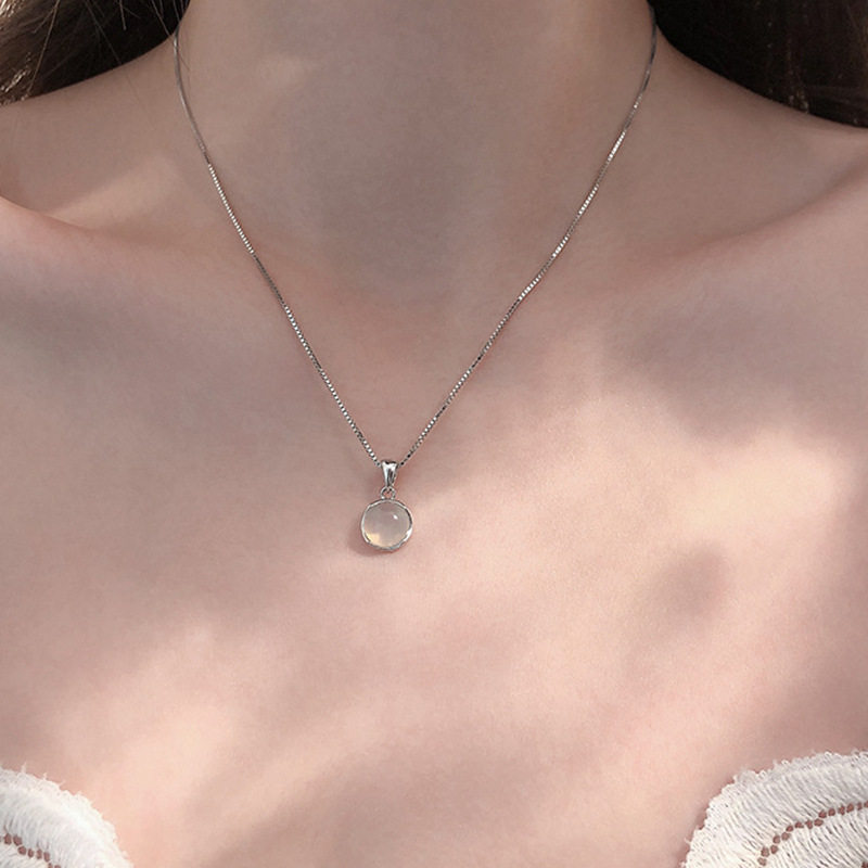 2025 New White Chalcedony Round Pendant Necklace Summer Versatile Collarbone Chain Fashion Personality Temperament Accessory