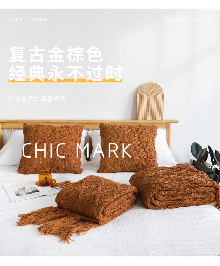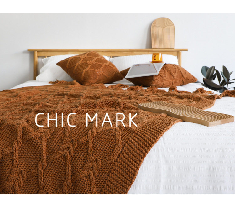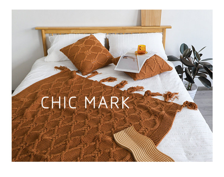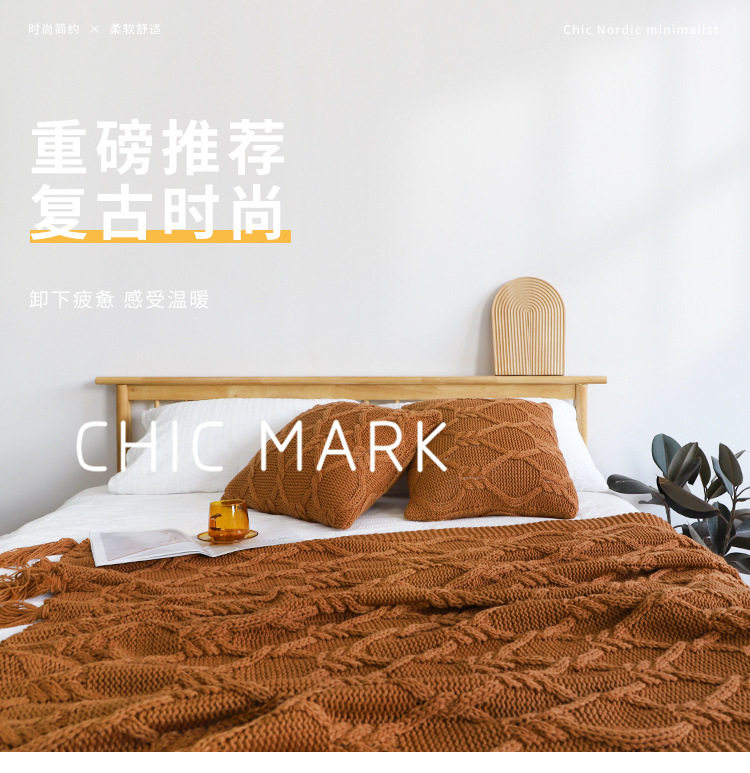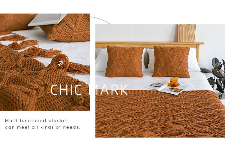 American Retro Autumn and Winter Thickened Coarse Woven Bed End Blanket Needle Tassel Bed End Blanket Homestay Sofa Blanket Decorative Blanket