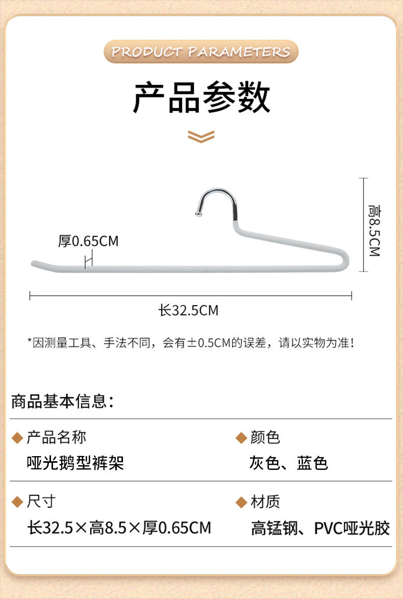 Color 28cm short goose-shaped trouser rack, gray,28cm anti-hook matte goose-shaped trouser rack, gray,32.5cm long goose-shaped trouser rack, gray,32.5cm reverse hook matte goose-shaped trouser rack, gray,32.5cm matte goose-shaped trouser rack, white,32.5cm reverse hook matte goose-shaped trouser rack, white,Matte double layer goose-shaped trouser rack, gray,Matte shoulder pad children's clothes hanger, gray,Matte shoulder pad children's clothes hanger, gray,Matte shoulder pad adult clothes hanger, gray,Matte semicircle, gray,Windproof hook matte semicircle, gray,Windproof hook matte semicircle, white