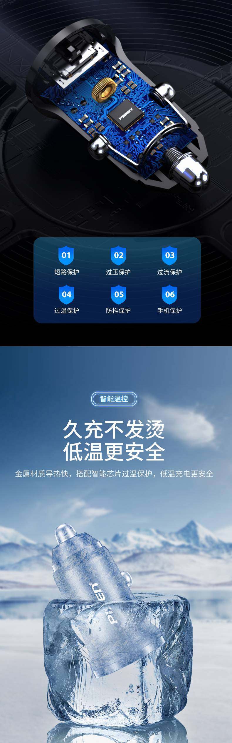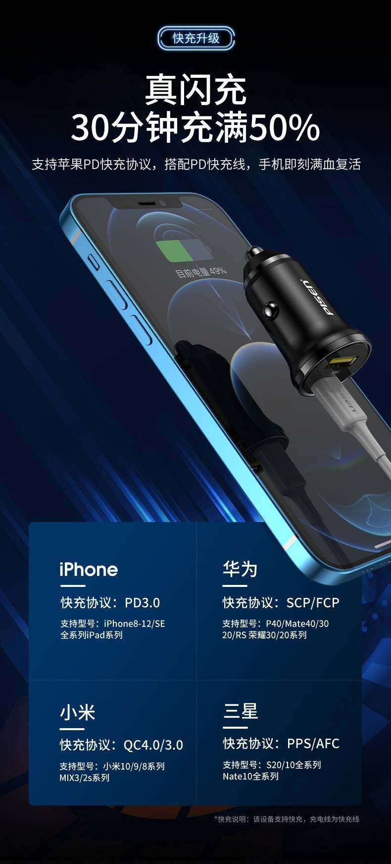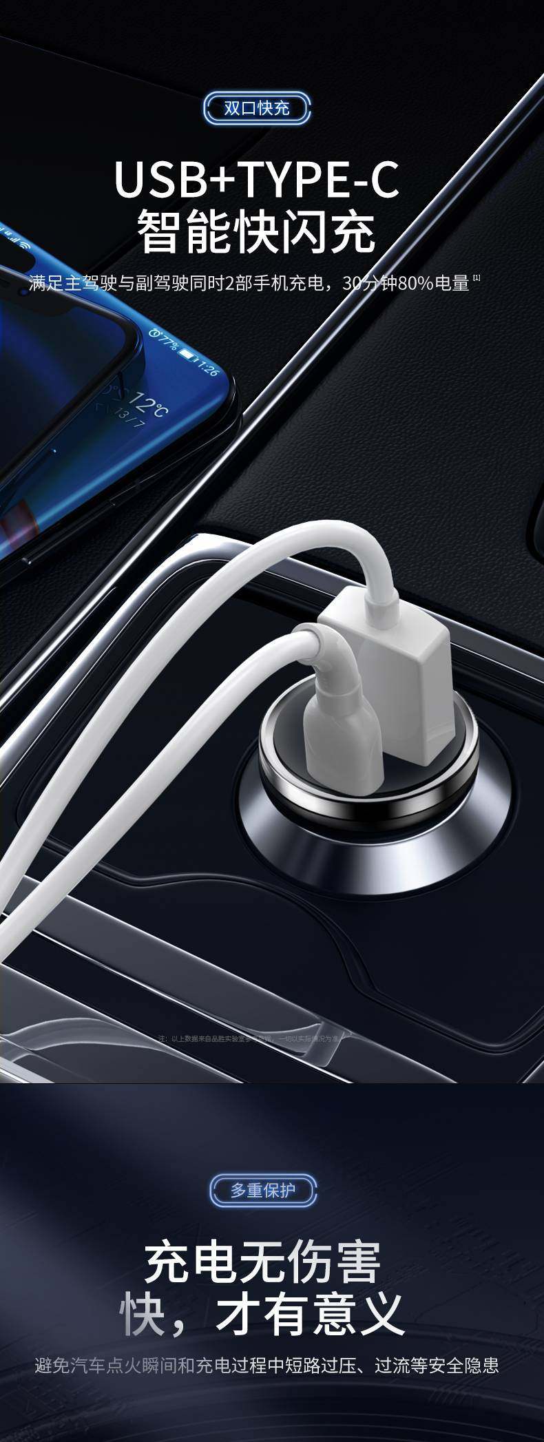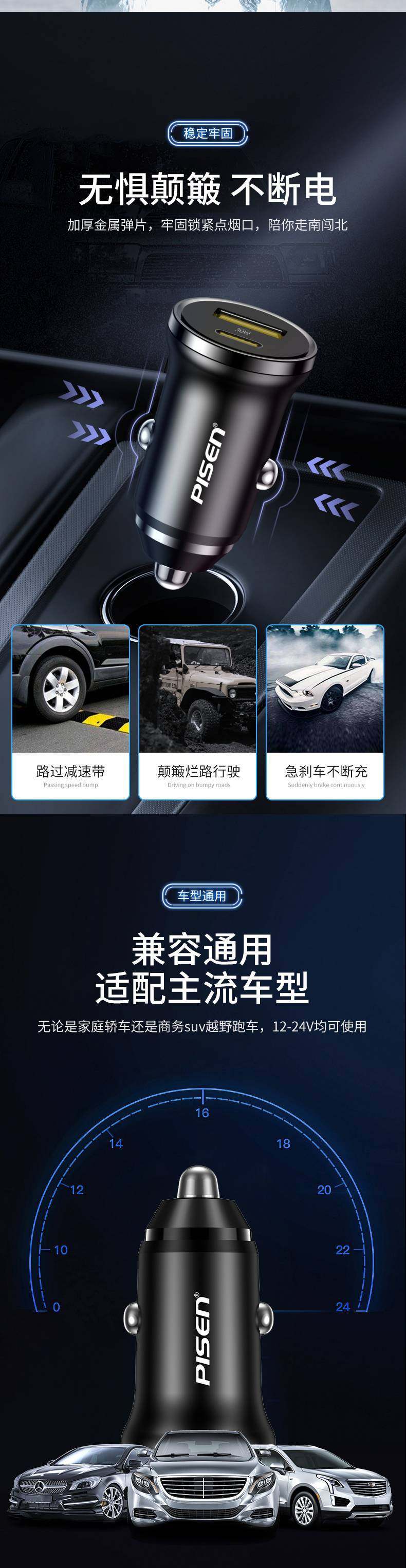 Pinsheng PD car charger one to two USB multi-function smart car charger 30W charger Apple Android fast charge