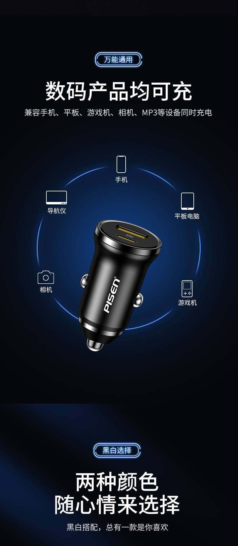 | Model | Dual port 15w car charger black,Dual port 15w car charger white,Pd30w car charger black,Pd30w car charger white,Double port 30w car charger black,Double port 30w car charger white |