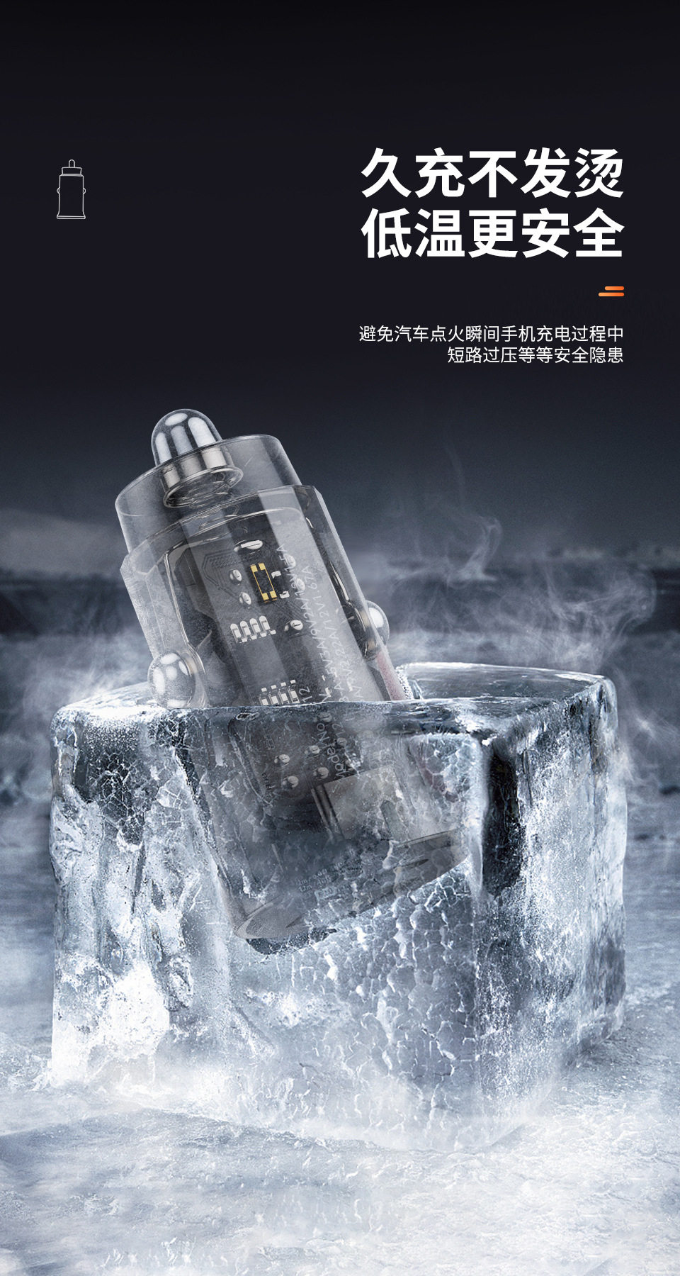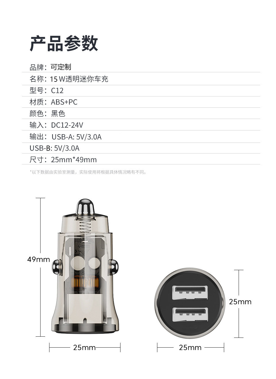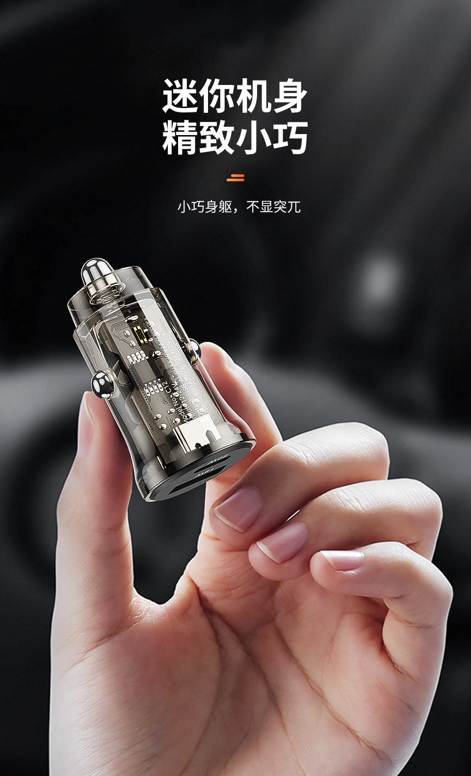 Private Model Mini Transparent Dual-Port High-Power Car Charger Adapter with Dual USB Fast Charging