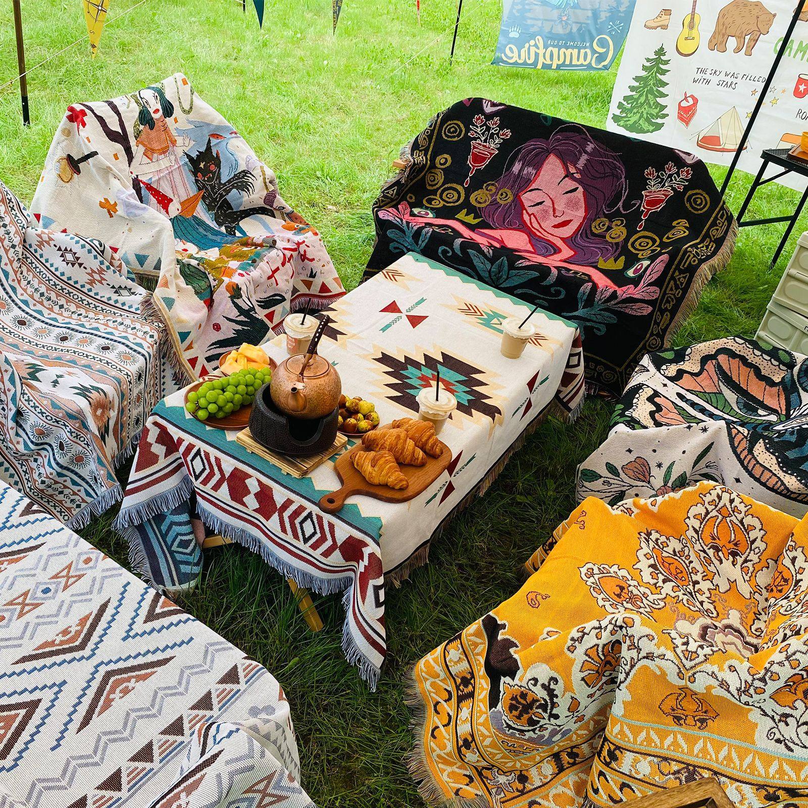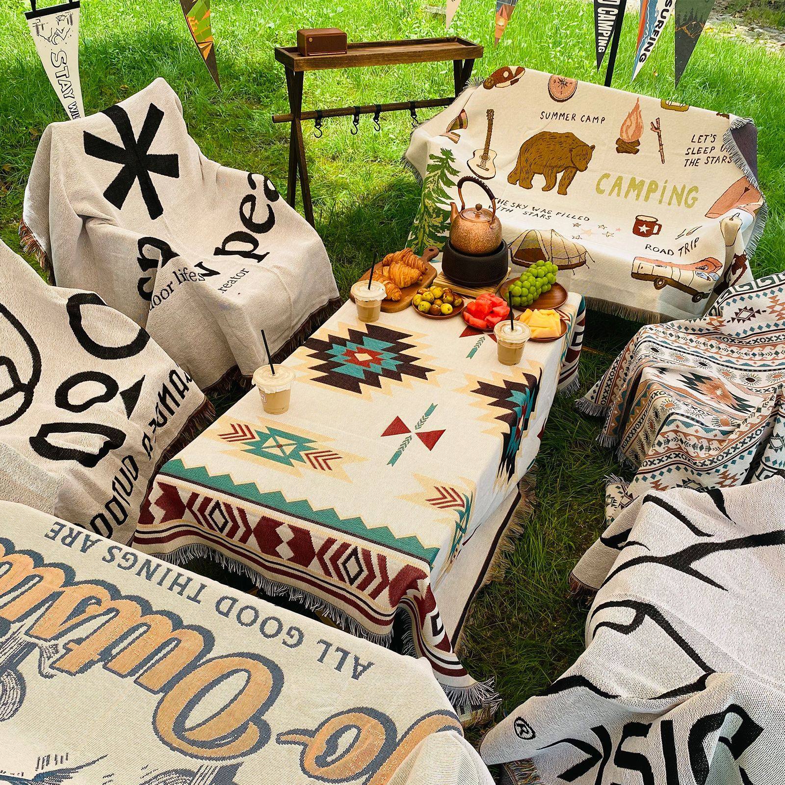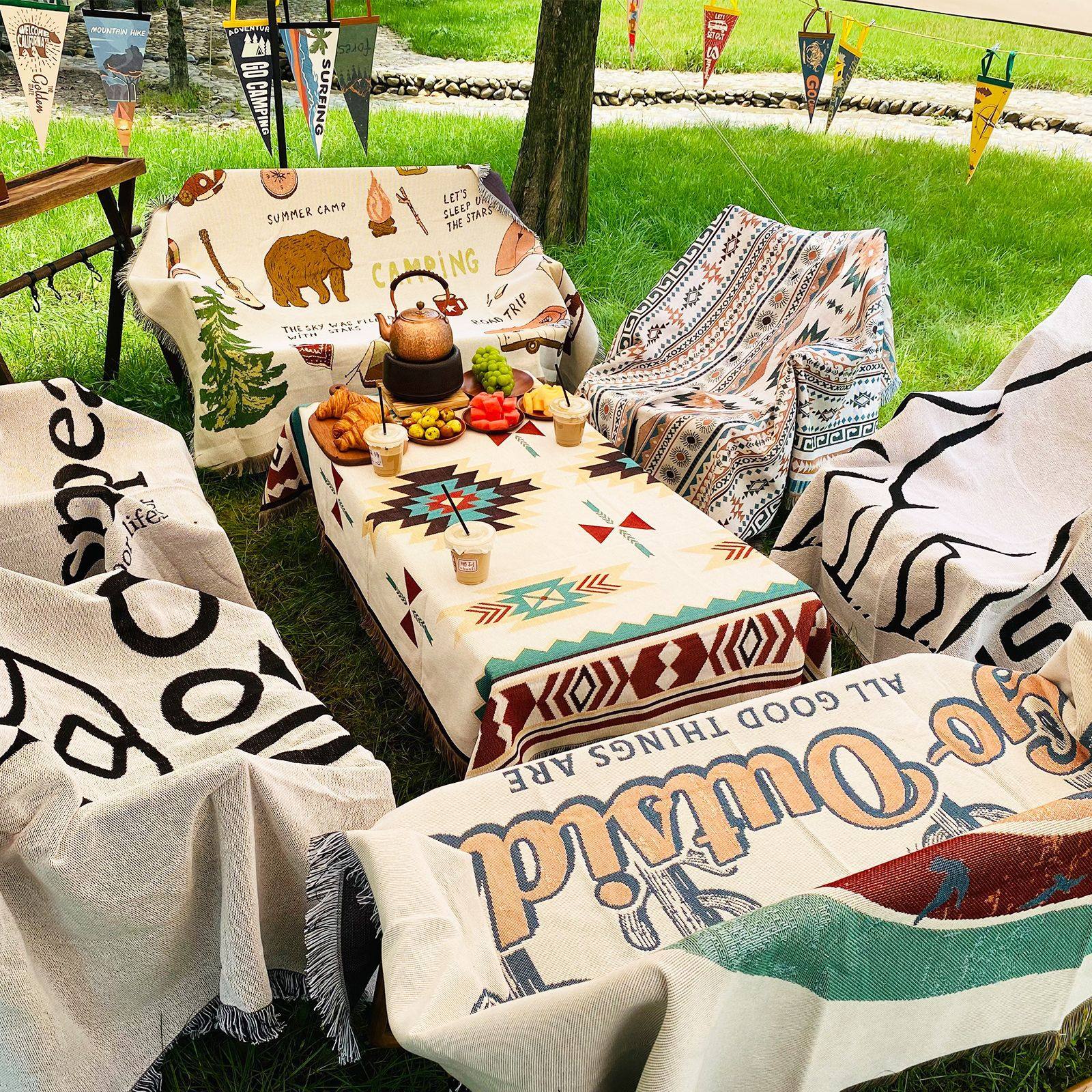 Camping Blanket Outdoor Blanket Picnic Blanket Sofa Blanket Ins Wind Line Blanket Nap Blanket Bohemian Blanket