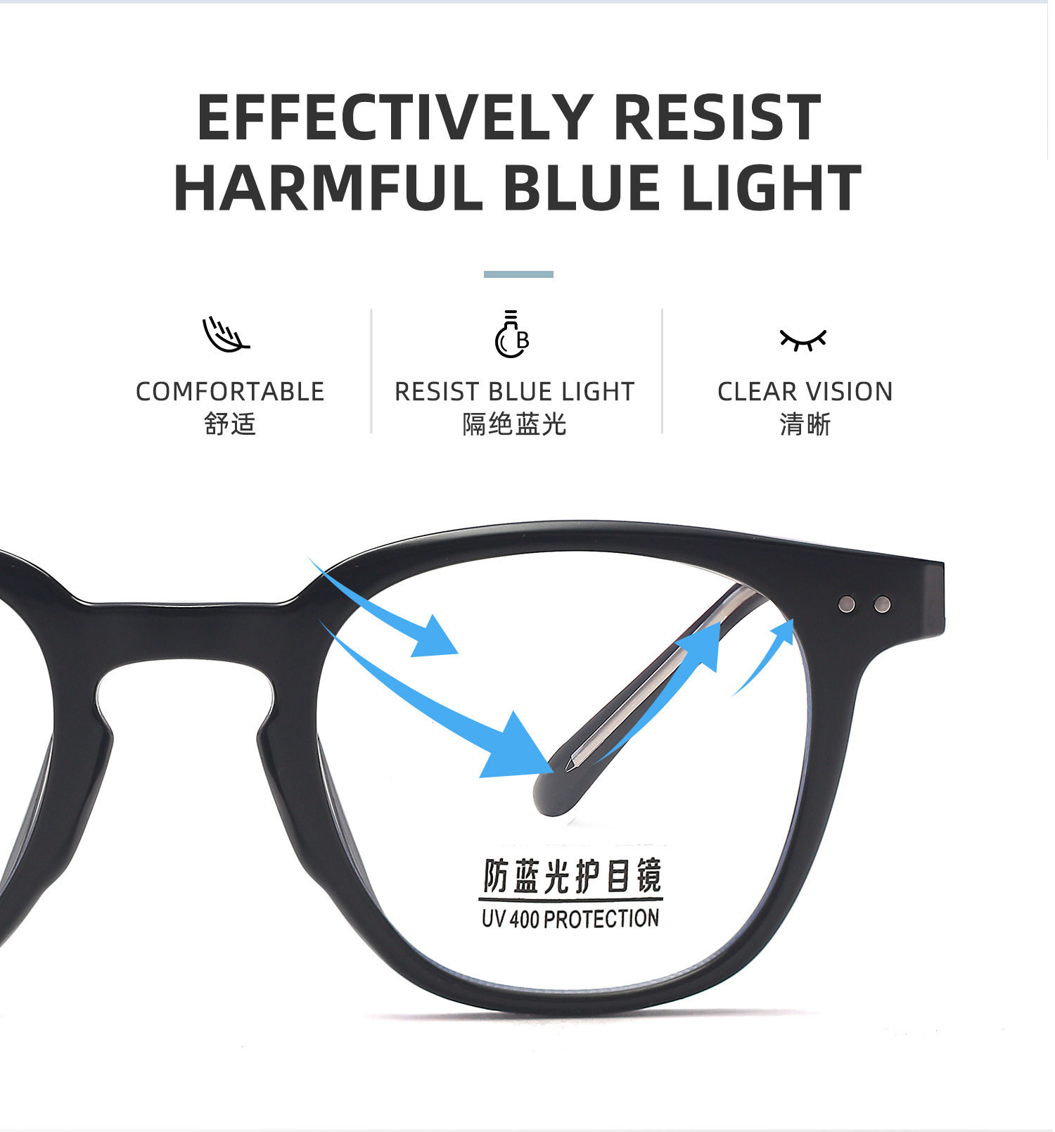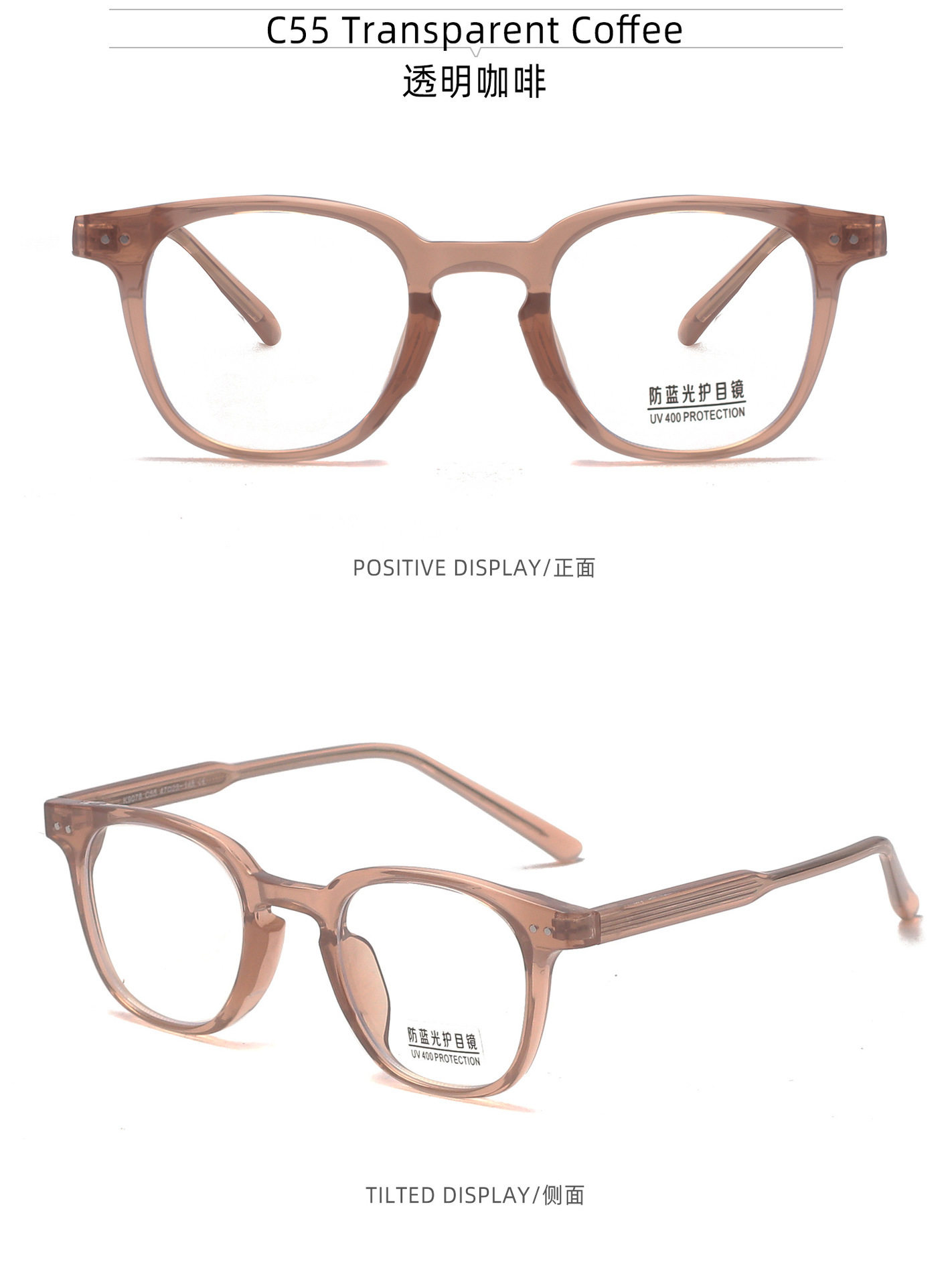 New Tr90 Plate Leg Anti-Blue Light Flat Glasses Frame Men's Fashionable Rice Nail Square Frame Can Be Matched with Sweet for Myopic Women