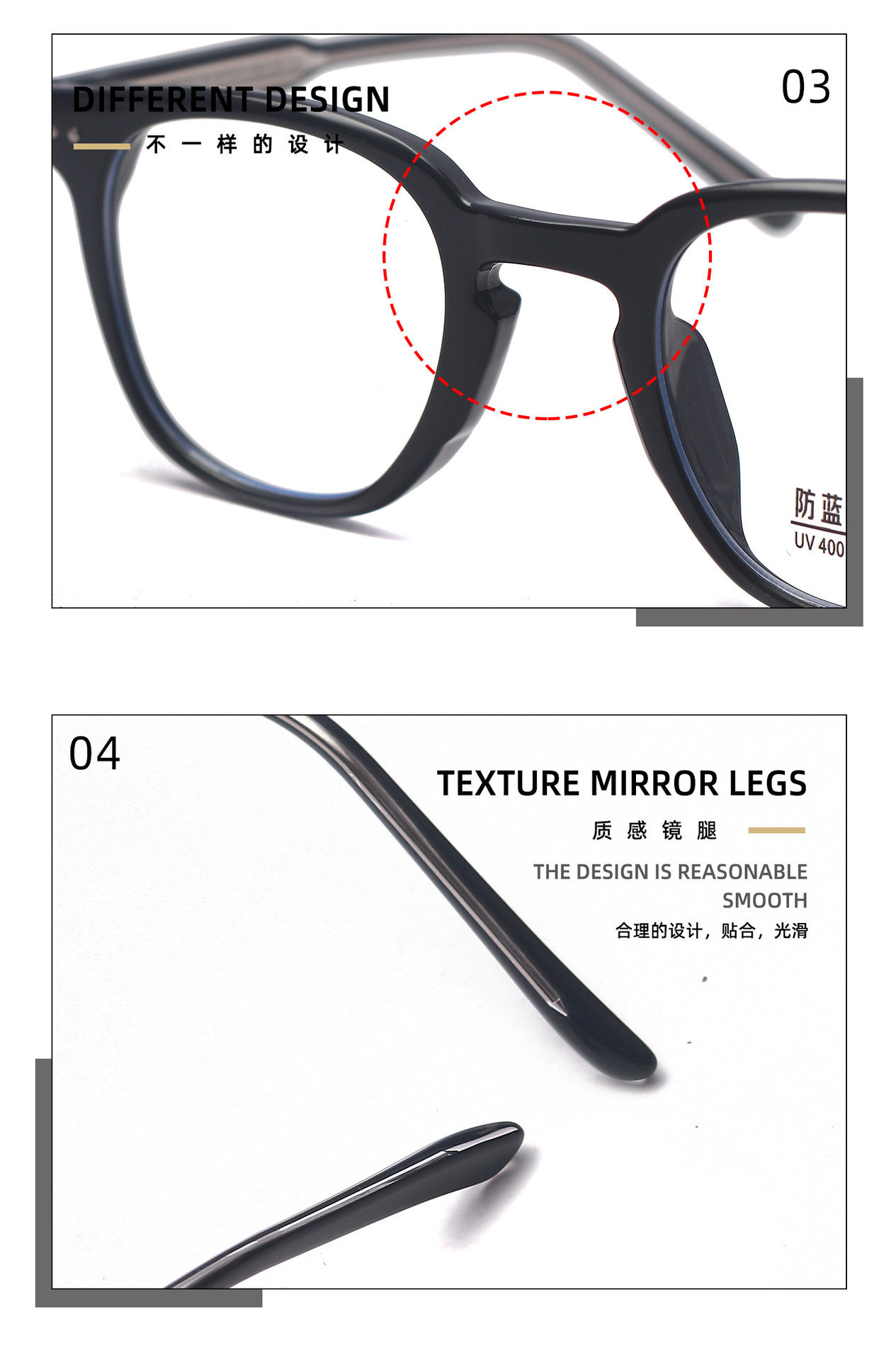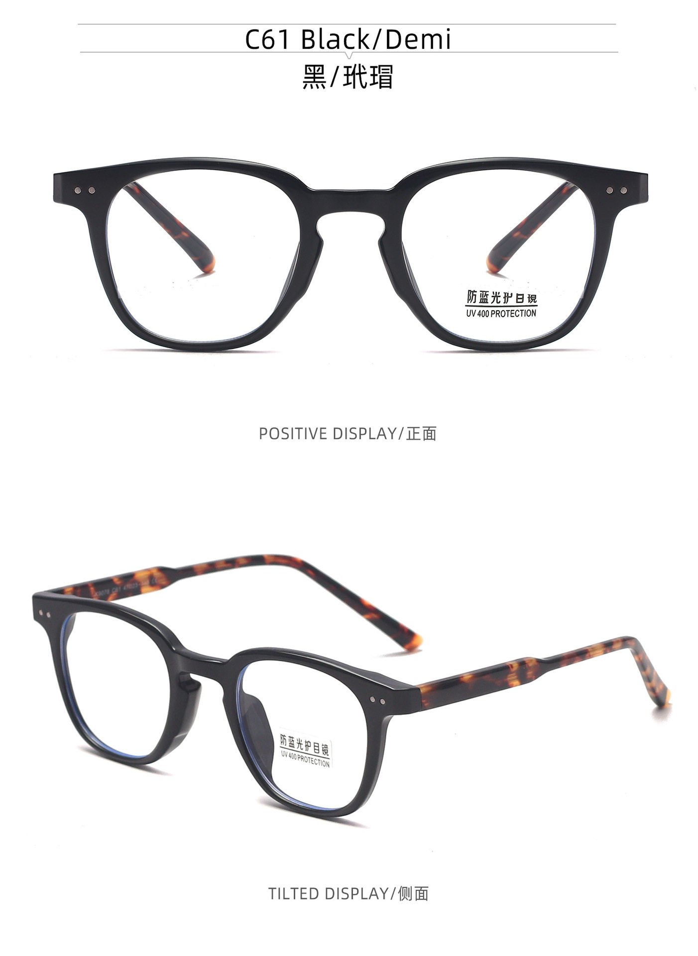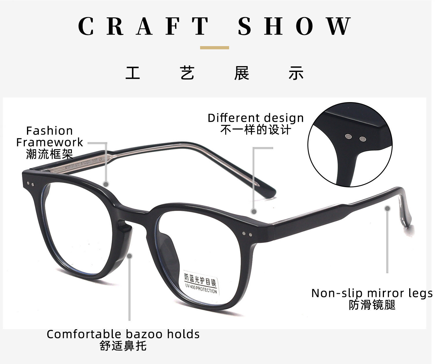 New Tr90 Plate Leg Anti-Blue Light Flat Glasses Frame Men's Fashionable Rice Nail Square Frame Can Be Matched with Sweet for Myopic Women