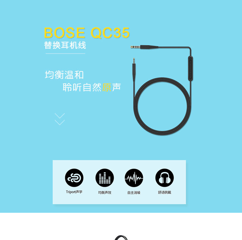 Factory wholesale applicable dr. BOSE earphone line QC35 audio line QC45 connection line 3.5 to 2.5mm wire