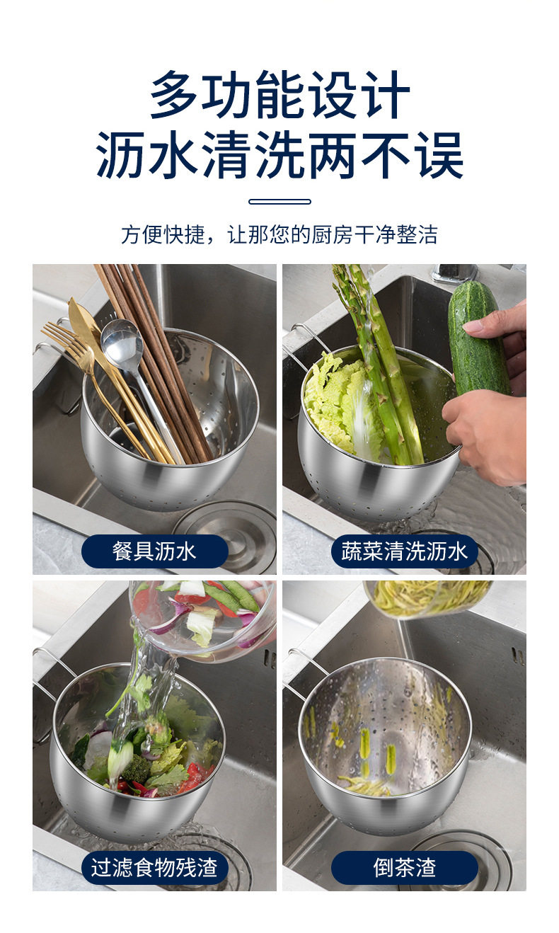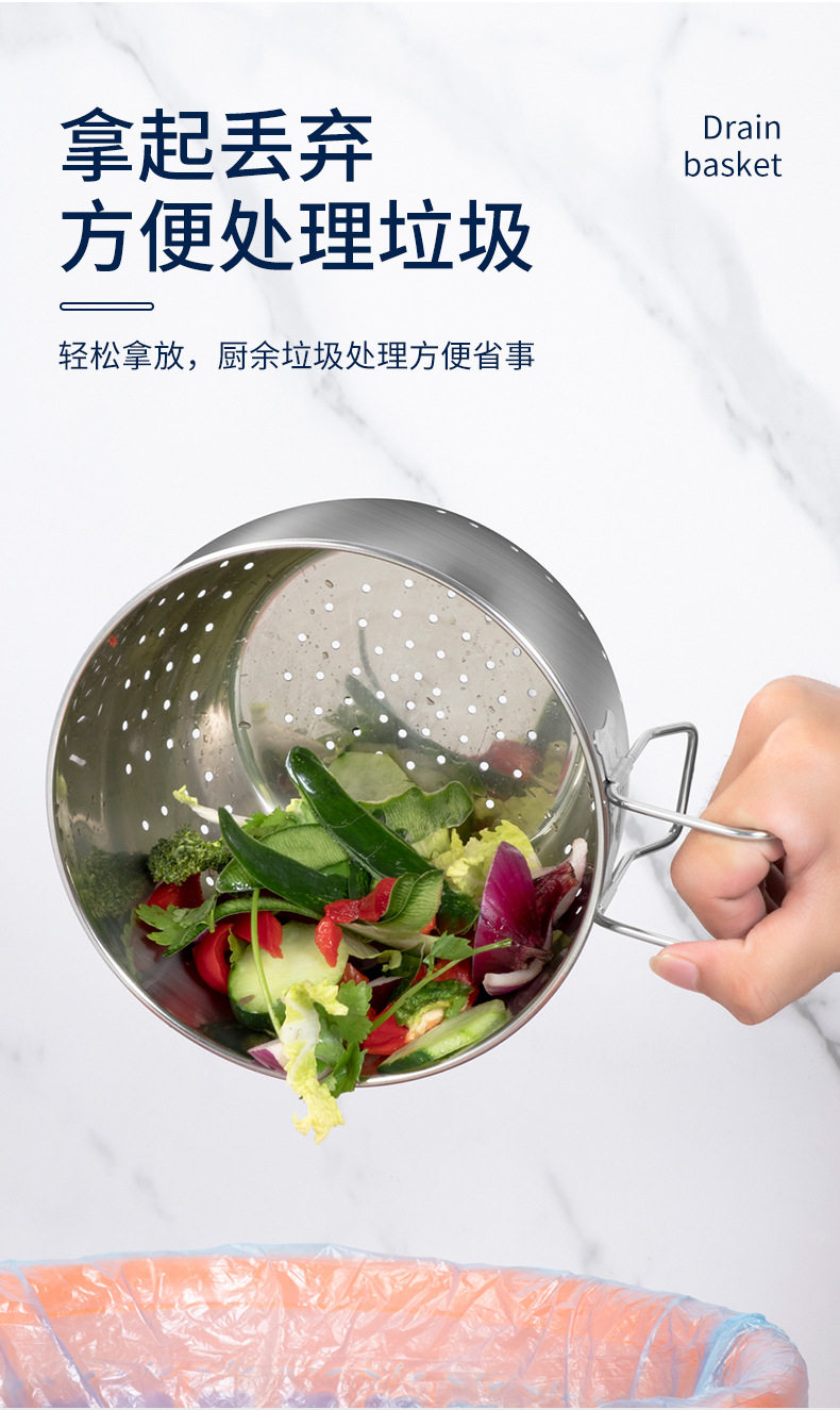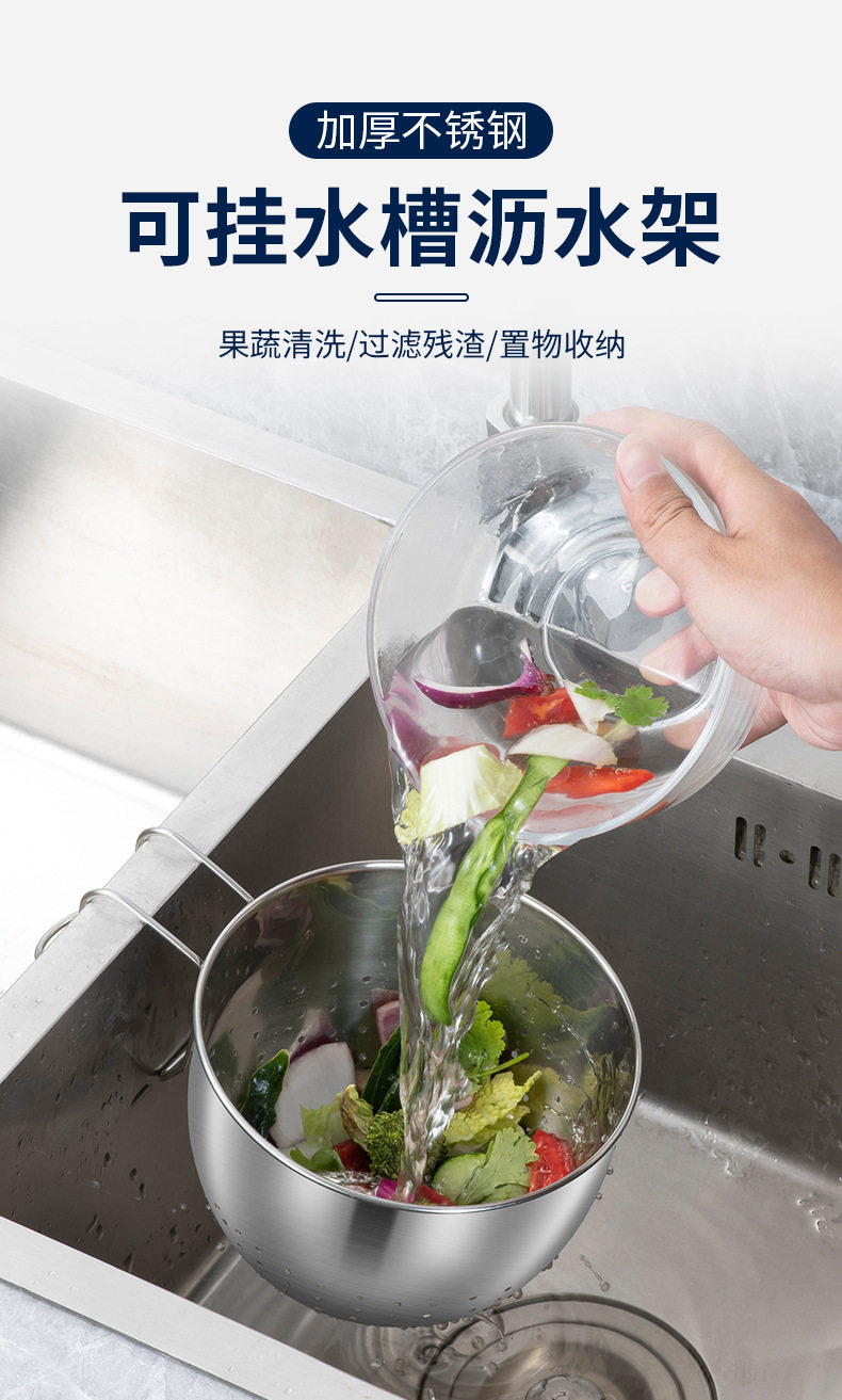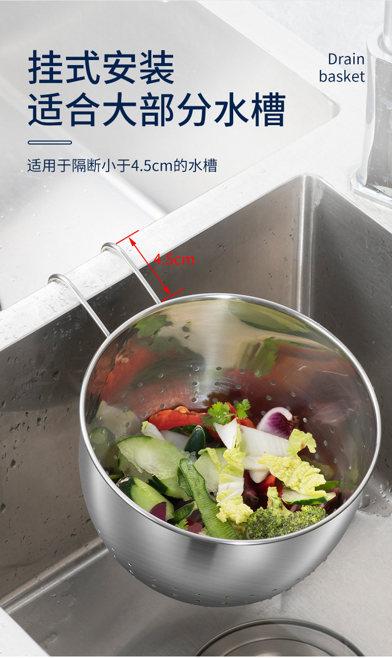 Thickened stainless steel kitchen sink drain basket kitchen waste filter screen washing vegetable filter rack manufacturers wholesale
