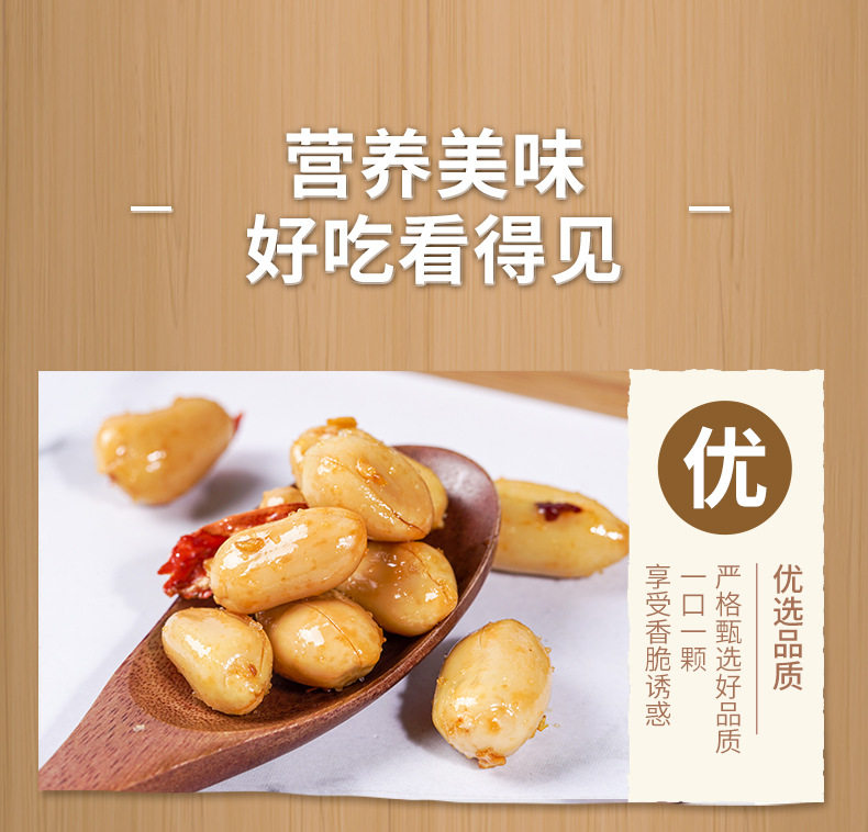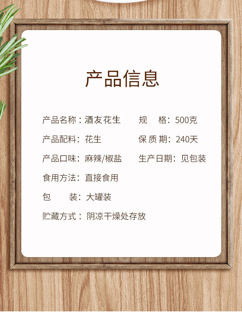 | Packaging specifications | [canned] skinned peanut milk flavor 500g,[canned] skinned peanuts garlic flavor 500g,[canned] five-flavored peanuts with skin 500g,Drinking buddy salt and pepper flavor 500g [canned],Drinking friends spicy flavor 500g [canned],[bag] iron pot peanuts 500g,[bag] shelled pearl peanut walnut flavor 500g,[bag] shelled pearl peanut garlic 500g,[bag] multi-flavor peanuts 500g,[canned] fish skin peanuts 400g,[bag] fish skin peanuts 400g |