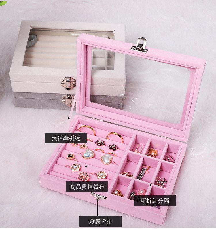 Flannel box jewelry necklace ring storage box earrings eardrop storage box Korean single-layer flannel jewelry box wholesale