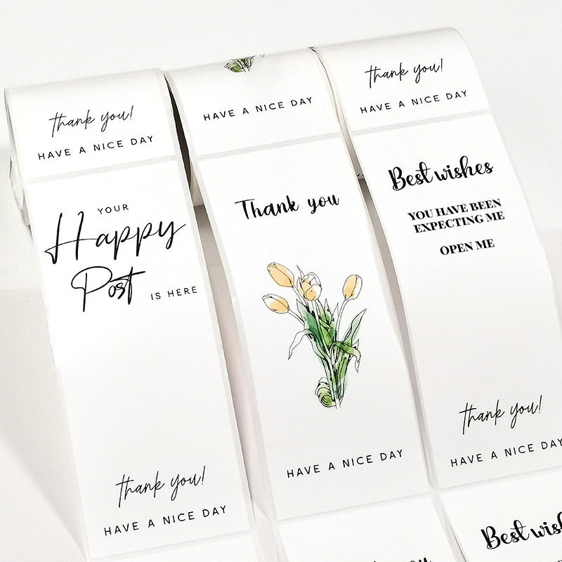 50 sheets/Roll White simple Tulip rectangular sticker gift box sealing sticker sticker packaging supplies